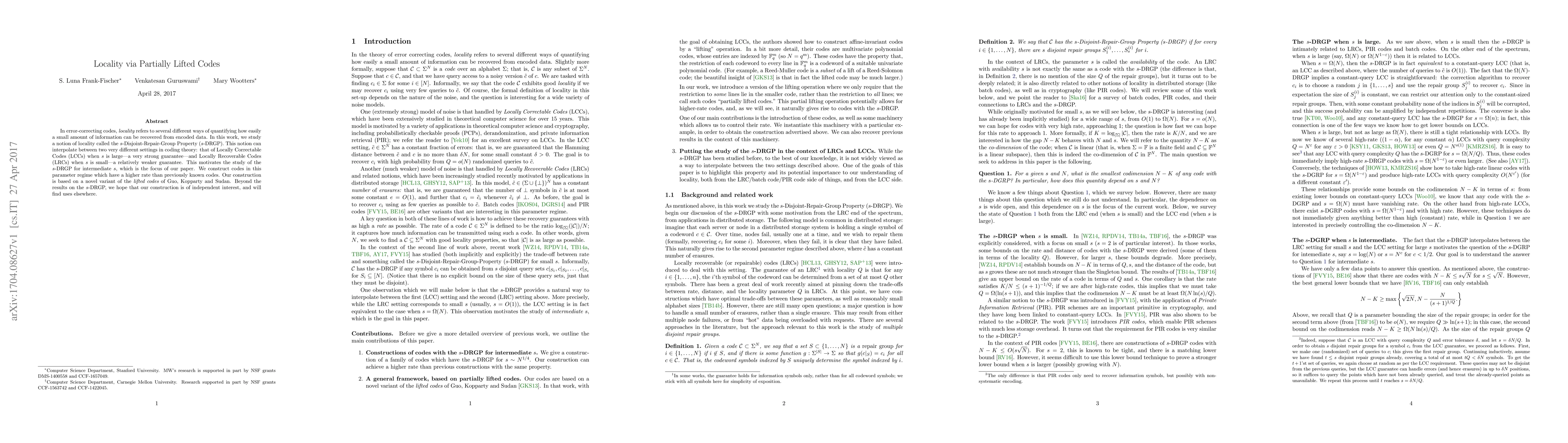 This paper explores the s-Disjoint-Repair-Group Property (s-DRGP) in error-correcting codes, which interpolates between Locally Correctable Codes and Locally Recoverable Codes. The authors construct codes with higher rates than previously known, based on a novel variant of lifted codes, aiming to bridge the gap between strong and weak locality guarantees.