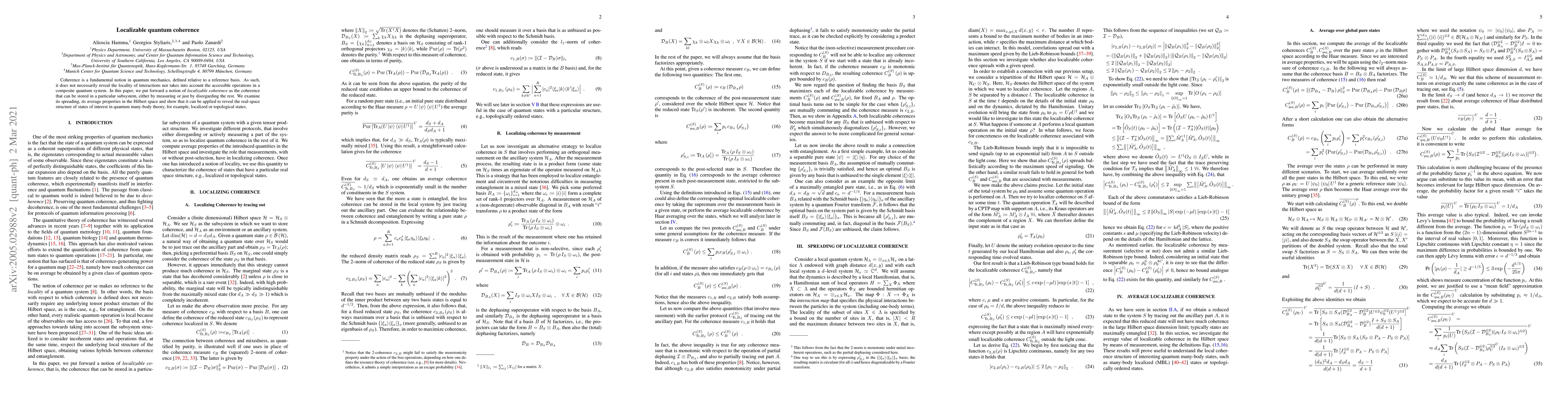 This paper introduces the concept of localizable coherence, which quantifies coherence storable within a specific subsystem, and explores its spreading and average properties. It demonstrates its utility in revealing the real-space structure of states in quantum many-body systems, such as localized or topological states.