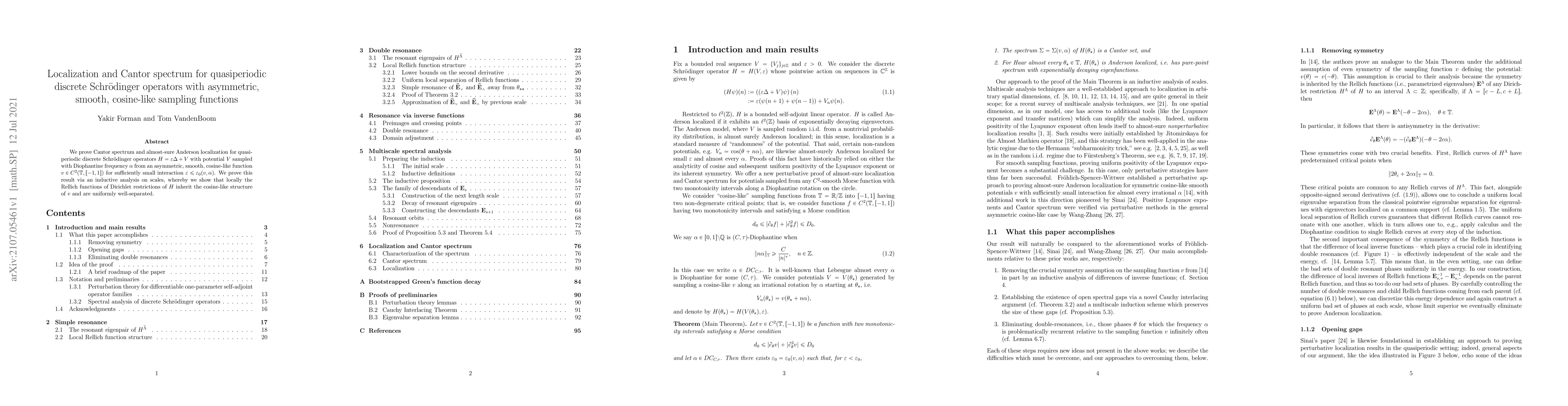 The paper introduces a detailed inductive method to prove localization and Cantor spectrum for quasiperiodic discrete Schrödinger operators with asymmetric potentials, advancing the theoretical framework for understanding quantum localization in complex systems.