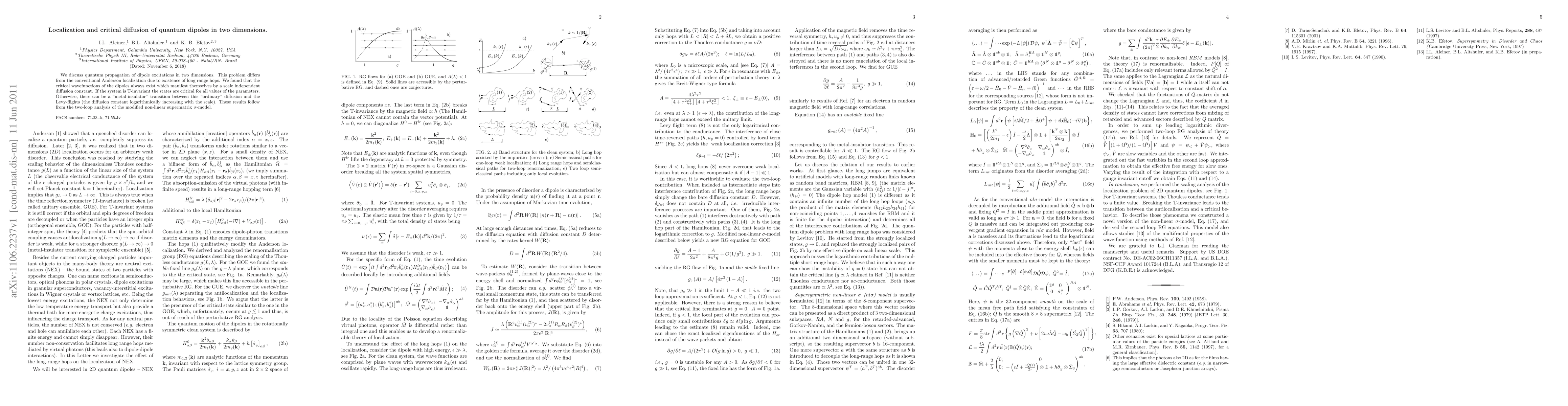 We discuss quantum propagation of dipole excitations in two dimensions. This problem differs from the conventional Anderson localization due to existence of long range hops. We found that the critical wavefunctions of the dipoles always exist which manifest themselves by a scale independent diffusion constant. If the system is T-invariant the states are critical for all values of the parameters. Otherwise, there can be a "metal-insulator" transition between this "ordinary" diffusion and the Levy-flights (the diffusion constant logarithmically increasing with the scale). These results follow from the two-loop analysis of the modified non-linear supermatrix $\sigma$-model.