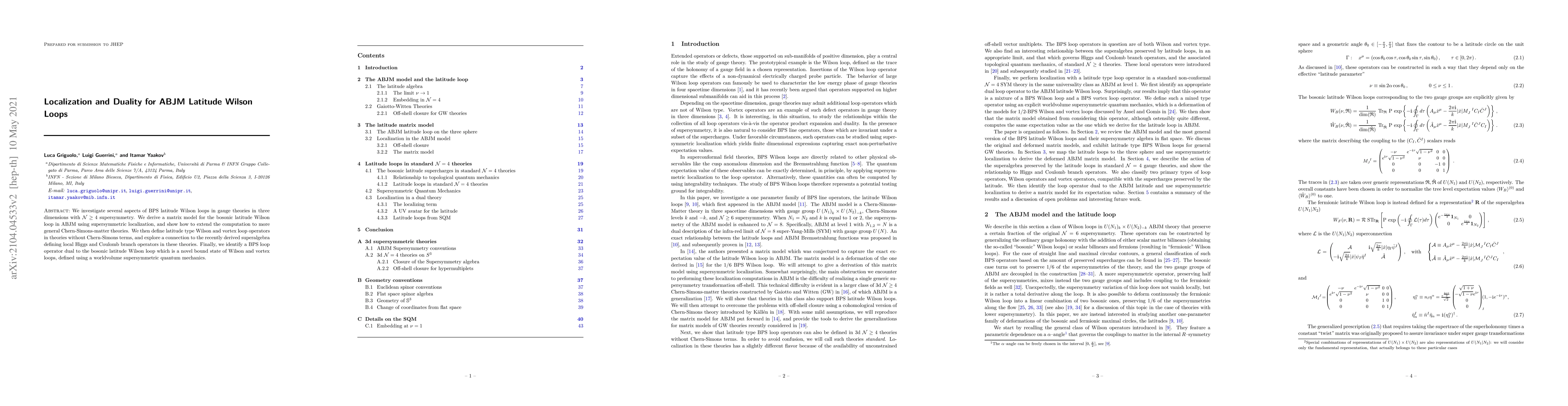 We investigate several aspects of BPS latitude Wilson loops in gauge theories in three dimensions with $\mathcal{N}\ge 4$ supersymmetry. We derive a matrix model for the bosonic latitude Wilson loop in ABJM using supersymmetric localization, and show how to extend the computation to more general Chern-Simons-matter theories. We then define latitude type Wilson and vortex loop operators in theories without Chern-Simons terms, and explore a connection to the recently derived superalgebra defining local Higgs and Coulomb branch operators in these theories. Finally, we identify a BPS loop operator dual to the bosonic latitude Wilson loop which is a novel bound state of Wilson and vortex loops, defined using a worldvolume supersymmetric quantum mechanics.