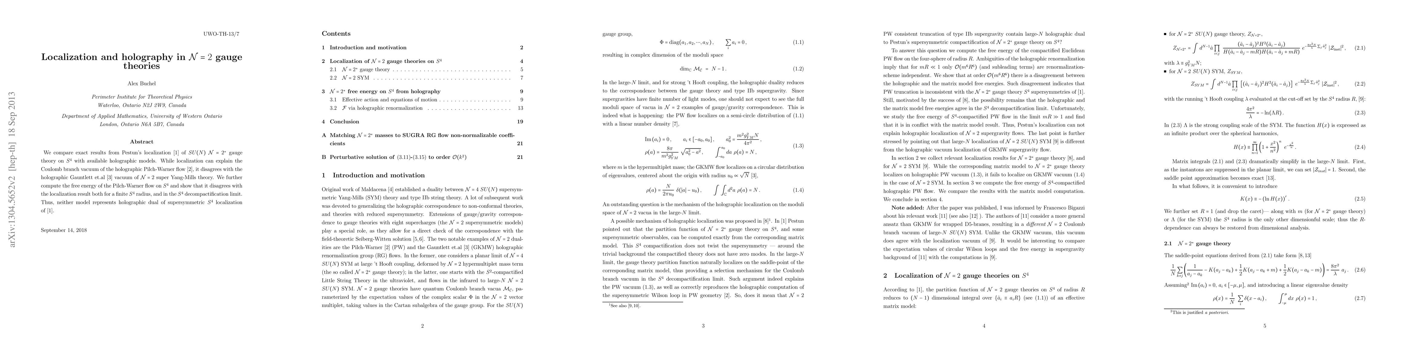 We compare exact results from Pestun's localization of SU(N) N=2^* gauge theory on S^4 with available holographic models. While localization can explain the Coulomb branch vacuum of the holographic Pilch-Warner flow, it disagrees with the holographic Gauntlett et.al vacuum of N=2 super Yang-Mills theory. We further compute the free energy of the Pilch-Warner flow on S^4 and show that it disagrees with the localization result both for a finite S^4 radius, and in the S^4 decompactification limit. Thus, neither model represents holographic dual of supersymmetric S^4 localization of Pestun.