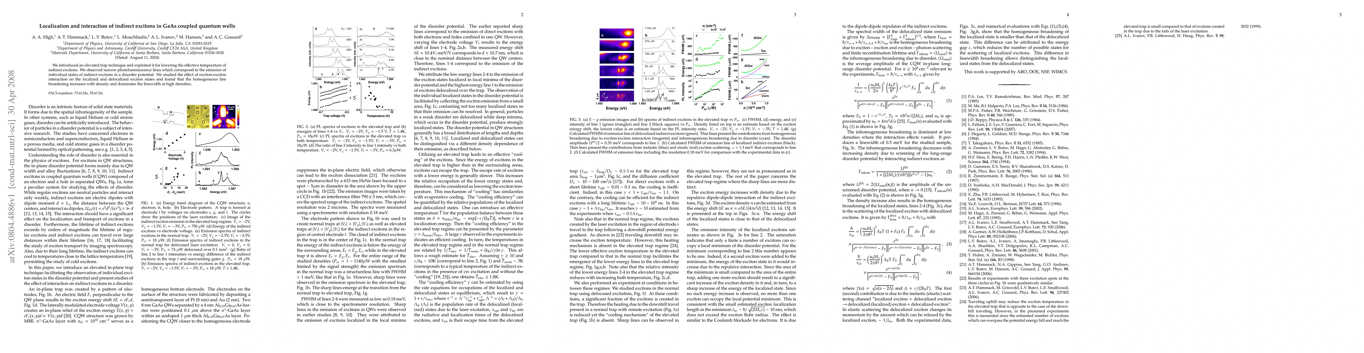 The study employs an elevated trap technique to lower the effective temperature of indirect excitons in GaAs coupled quantum wells, observing narrow photoluminescence lines from localized exciton states. The exciton-exciton interaction causes homogeneous line broadening, which becomes dominant at higher densities.
