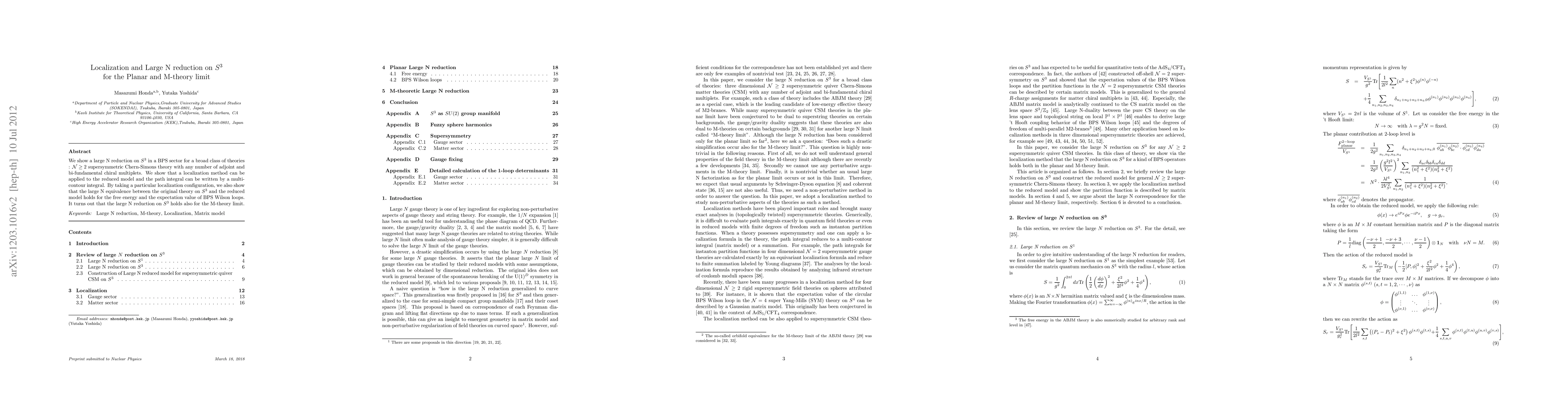 This paper demonstrates a large N reduction on S^3 for N>=2 supersymmetric Chern-Simons theories with various chiral multiplets, showing that localization methods can be applied to the reduced model. The equivalence between the original theory and the reduced model is maintained for free energy and BPS Wilson loop expectations, extending to the M-theory limit.