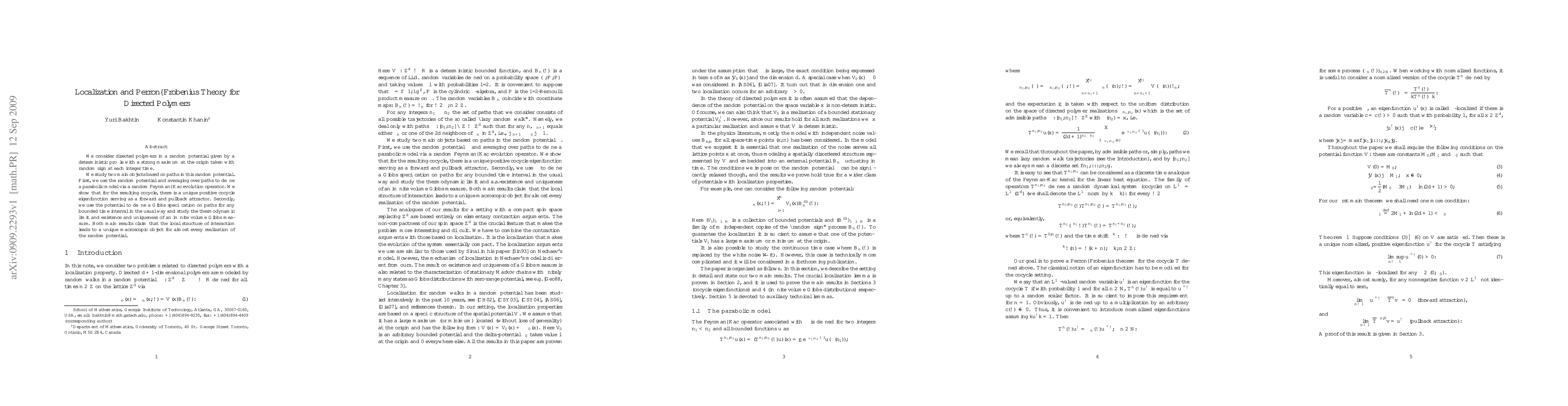 We consider directed polymers in a random potential given by a deterministic profile with a strong maximum at the origin taken with random sign at each integer time. We study two main objects based on paths in this random potential. First, we use the random potential and averaging over paths to define a parabolic model via a random Feynman--Kac evolution operator. We show that for the resulting cocycle, there is a unique positive cocycle eigenfunction serving as a forward and pullback attractor. Secondly, we use the potential to define a Gibbs specification on paths for any bounded time interval in the usual way and study the thermodynamic limit and existence and uniqueness of an infinite volume Gibbs measure. Both main results claim that the local structure of interaction leads to a unique macroscopic object for almost every realization of the random potential.