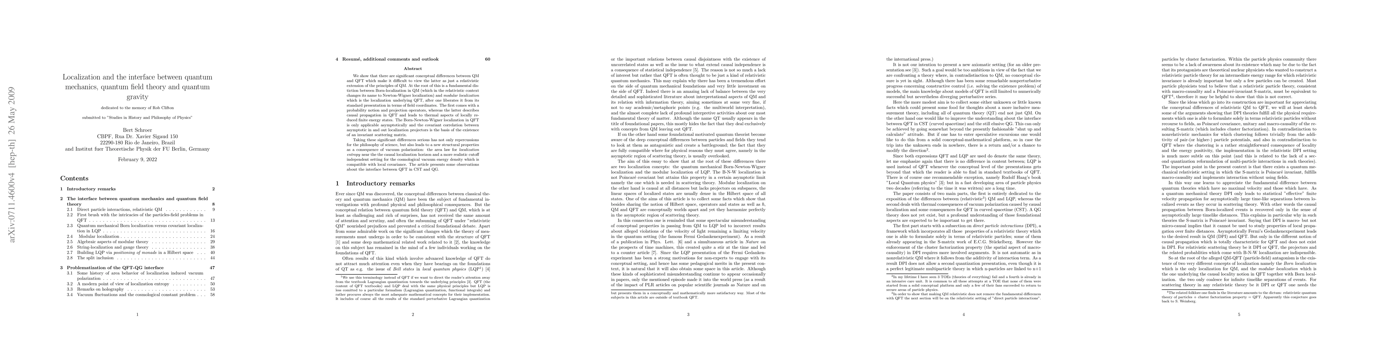 We show that there are significant conceptual differences between QM and QFT which make it difficult to view the latter as just a relativistic extension of the principles of QM. At the root of this is a fundamental distinction between Born-localization in QM (which in the relativistic context changes its name to Newton-Wigner localization) and modular localization which is the localization underlying QFT, after one liberates it from its standard presentation in terms of field coordinates. The first comes with a probability notion and projection operators, whereas the latter describes causal propagation in QFT and leads to thermal aspects of locally reduced finite energy states. The Born-Newton-Wigner localization in QFT is only applicable asymptotically and the covariant correlation between asymptotic in and out localization projectors is the basis of the existence of an invariant scattering matrix. Taking these significant differences serious has not only repercussions for the philosophy of science, but also leads to a new structural properties as a consequence of vacuum polarization: the area law for localization entropy near the the causal localization horizon and a more realistic cutoff independent setting for the cosmological vacuum energy density which is compatible with local covariance. The article presents some observations about the interface between QFT in CST and QG.