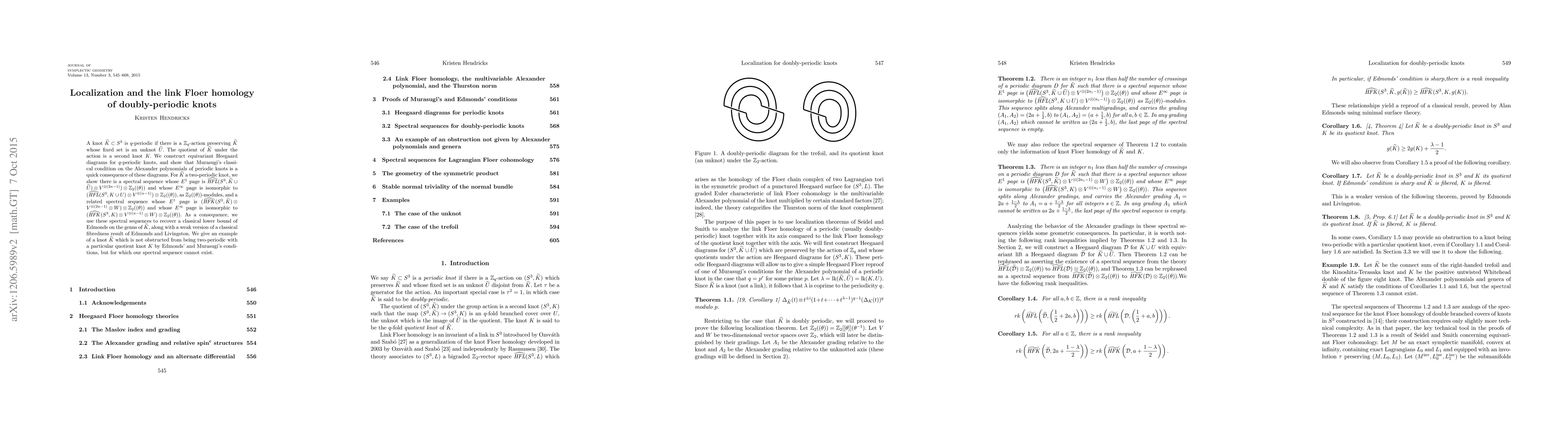 A knot \widetilde{K} \subset S^3 is q-periodic if there is a \mathbb Z_q-action preserving \widetilde{K} whose fixed set is an unknot U. The quotient of \widetilde{K} under the action is a second knot K. We construct equivariant Heegaard diagrams for q-periodic knots, and show that Murasugi's classical condition on the Alexander polynomials of periodic knots is a quick consequence of these diagrams. For \widetilde{K} a two-periodic knot, we show there is a spectral sequence whose E^1 page is \hat{\mathit{HFL}}(S^3,\widetilde{K}\cup U)\otimes V^{\otimes (2n-1)})\otimes \mathbb Z_2((\theta)) and whose E^{\infty} pages is isomorphic to (\hat{\mathit{HFL}}(S^3,K\cup U)\otimes V^{\otimes (n-1)})\otimes \mathbb Z_2((\theta)), as \mathbb Z_2((\theta))-modules, and a related spectral sequence whose E^1 page is (\hat{\mathit{HFK}}(S^3,\widetilde{K})\otimes V^{\otimes (2n-1)}\otimes W)\otimes \mathbb Z_2((\theta)) and whose E^{\infty} page is isomorphic to (\hat{\mathit{HFK}}(S^3,K)\otimes V^{\otimes (n-1)} \otimes W)\otimes \mathbb Z_2((\theta)). As a consequence, we use these spectral sequences to recover a classical lower bound of Edmonds on the genus of \widetilde{K}, along with a weak version of a classical fibredness result of Edmonds and Livingston.