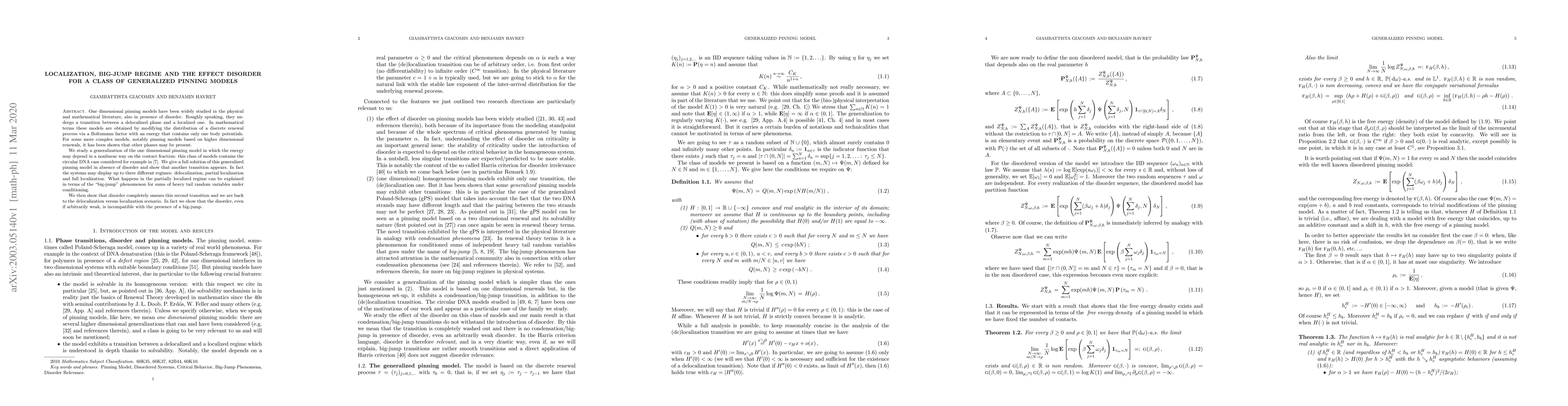 Researchers discovered a new transition in one-dimensional pinning models with nonlinear energy dependence on contact fraction, finding three regimes: delocalization, partial localization, and full localization. Disorder eliminates the 'big-jump' phenomenon, returning to the delocalization vs localization scenario.