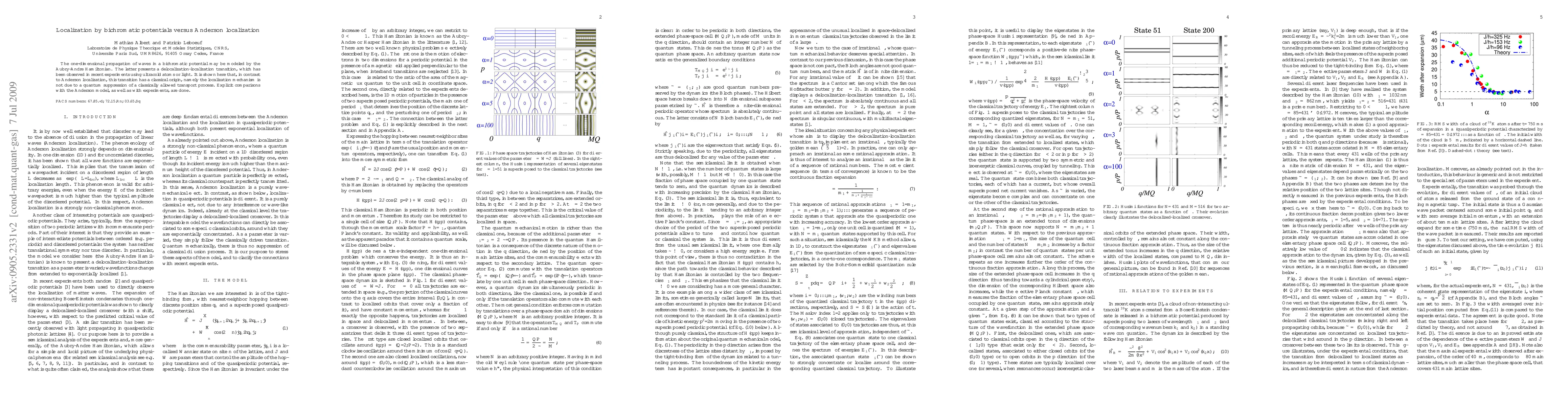 This paper explores the localization phenomena in one-dimensional waves through the Aubry-André Hamiltonian in bichromatic potentials, demonstrating a localization-delocalization transition with classical origins, differing from the quantum-based Anderson localization, and comparing its findings with experimental observations.