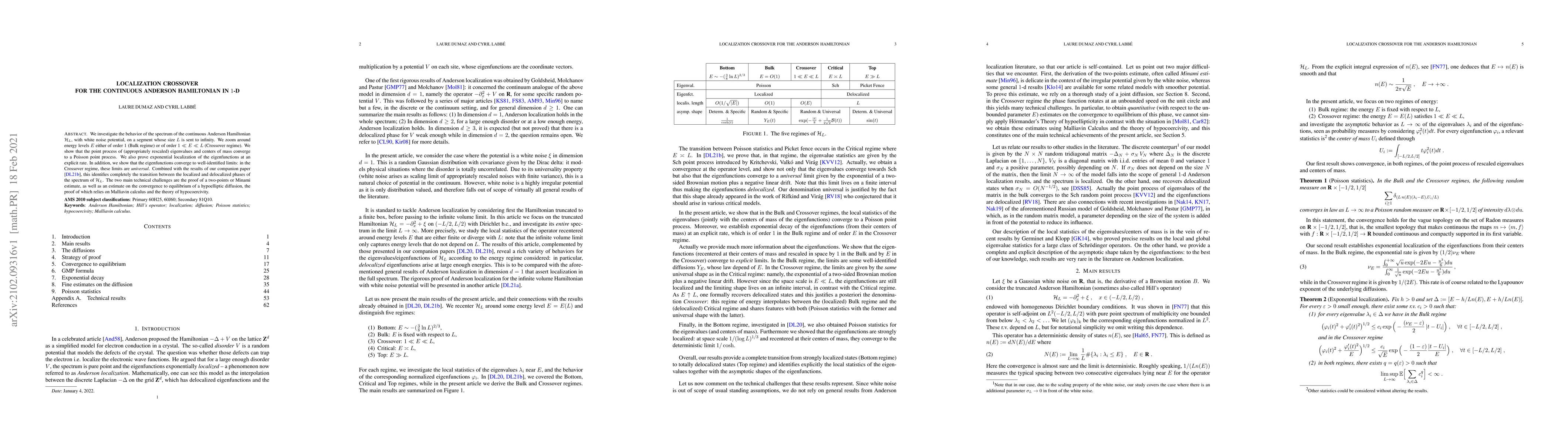 We investigate the behavior of the spectrum of the continuous Anderson Hamiltonian $\mathcal{H}_L$, with white noise potential, on a segment whose size $L$ is sent to infinity. We zoom around energy levels $E$ either of order $1$ (Bulk regime) or of order $1\ll E \ll L$ (Crossover regime). We show that the point process of (appropriately rescaled) eigenvalues and centers of mass converge to a Poisson point process. We also prove exponential localization of the eigenfunctions at an explicit rate. In addition, we show that the eigenfunctions converge to well-identified limits: in the Crossover regime, these limits are universal. Combined with the results of our companion paper arXiv:2102.05393, this identifies completely the transition between the localized and delocalized phases of the spectrum of $\mathcal{H}_L$. The two main technical challenges are the proof of a two-points or Minami estimate, as well as an estimate on the convergence to equilibrium of a hypoelliptic diffusion, the proof of which relies on Malliavin calculus and the theory of hypocoercivity.