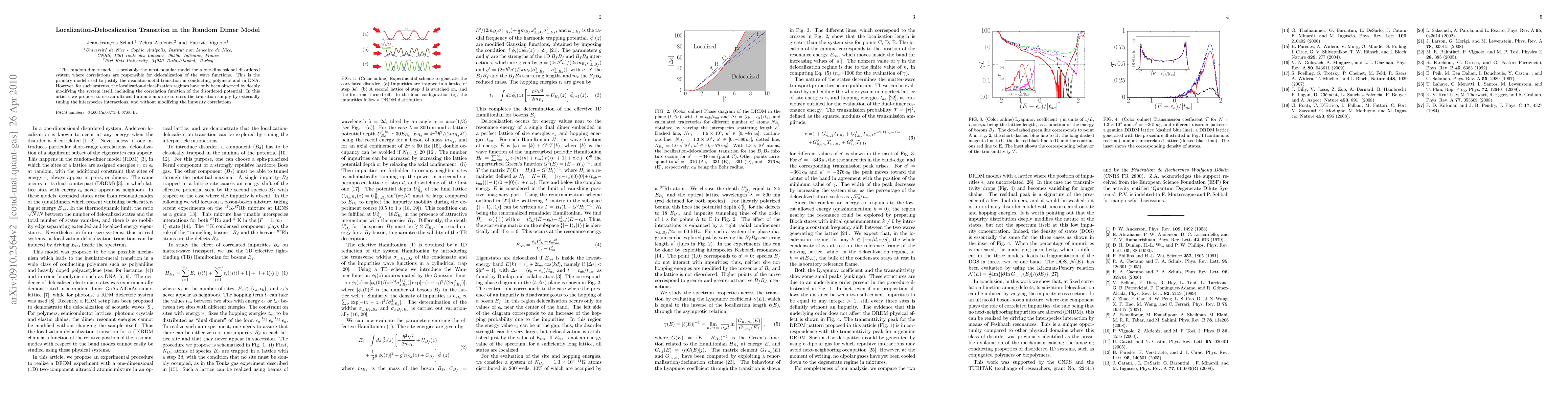 The paper investigates the localization-delocalization transition in the random-dimer model, a popular framework for one-dimensional disordered systems. It proposes using an ultracold atomic mixture to transition between these regimes by tuning interspecies interactions without altering impurity correlations.