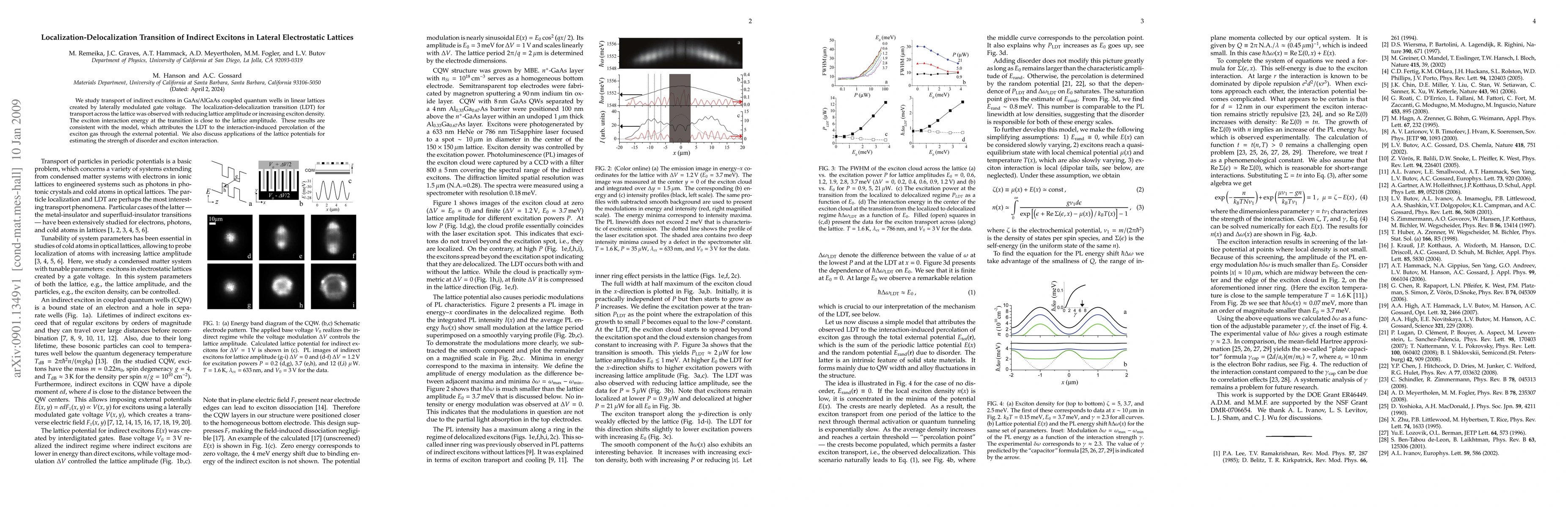 This paper investigates the transport of indirect excitons in GaAs/AlGaAs quantum wells under lateral electrostatic lattices, observing a localization-delocalization transition that correlates with lattice amplitude and exciton density. The transition is attributed to interaction-induced percolation, with implications for estimating disorder and exciton interaction strength.