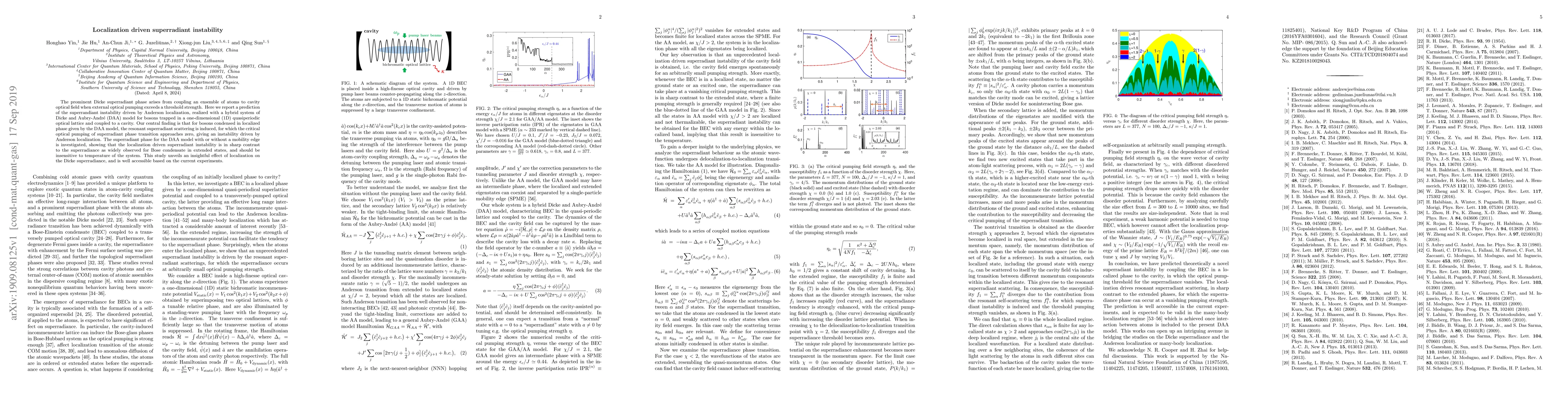 The prominent Dicke superradiant phase arises from coupling an ensemble of atoms to cavity optical field when external optical pumping exceeds a threshold strength. Here we report a prediction of the superrandiant instability driven by Anderson localization, realized with a hybrid system of Dicke and Aubry-Andre (DAA) model for bosons trapped in a one-dimensional (1D) quasiperiodic optical lattice and coupled to a cavity. Our central finding is that for bosons condensed in localized phase given by the DAA model, the resonant superradiant scattering is induced, for which the critical optical pumping of superradiant phase transition approaches zero, giving an instability driven by Anderson localization. The superradiant phase for the DAA model with or without a mobility edge is investigated, showing that the localization driven superradiant instability is in sharp contrast to the superradiance as widely observed for Bose condensate in extended states, and should be insensitive to temperature of the system. This study unveils an insightful effect of localization on the Dicke superradiance, and is well accessible based on the current experiments.