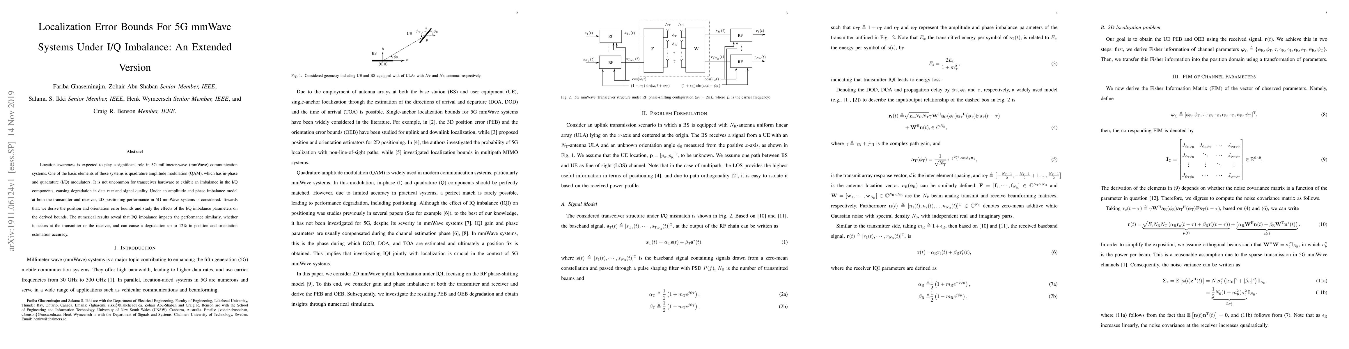 This paper investigates the impact of I/Q imbalance on the localization accuracy in 5G mmWave systems, deriving error bounds for position and orientation. Results show that I/Q imbalance can degrade estimation accuracy by up to 12%, regardless of whether it occurs at the transmitter or receiver.