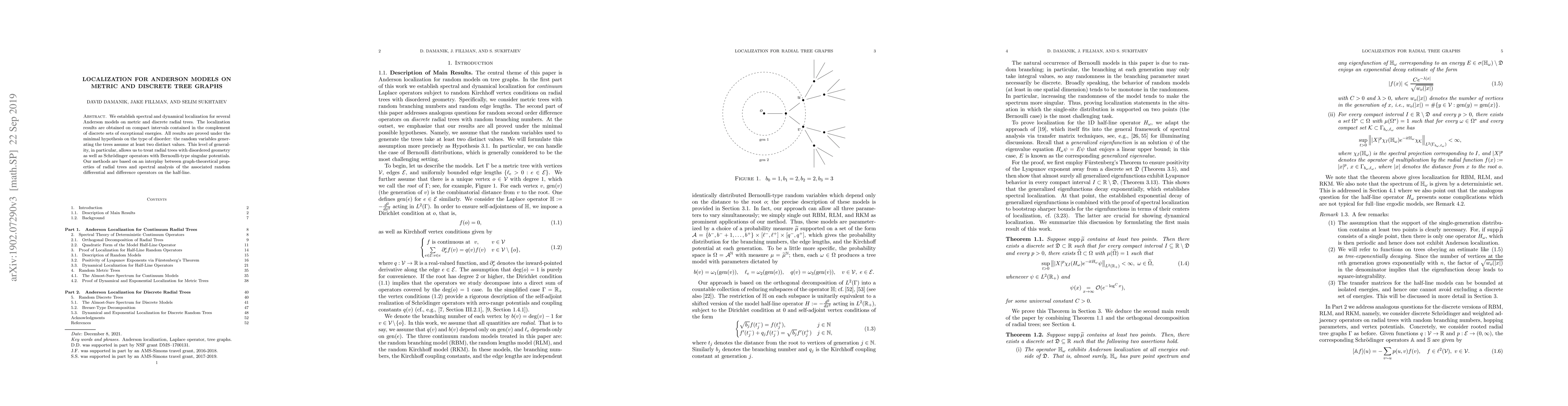 We establish spectral and dynamical localization for several Anderson models on metric and discrete radial trees. The localization results are obtained on compact intervals contained in the complement of discrete sets of exceptional energies. All results are proved under the minimal hypothesis on the type of disorder: the random variables generating the trees assume at least two distinct values. This level of generality, in particular, allows us to treat radial trees with disordered geometry as well as Schr\"odinger operators with Bernoulli-type singular potentials. Our methods are based on an interplay between graph-theoretical properties of radial trees and spectral analysis of the associated random differential and difference operators on the half-line.