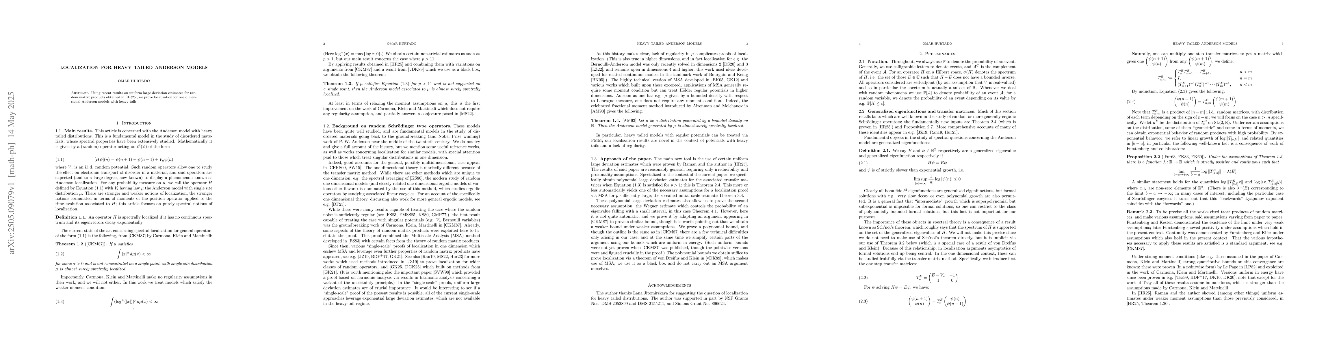The paper presents a novel application of uniform large deviation estimates to prove localization in heavy-tailed Anderson models.