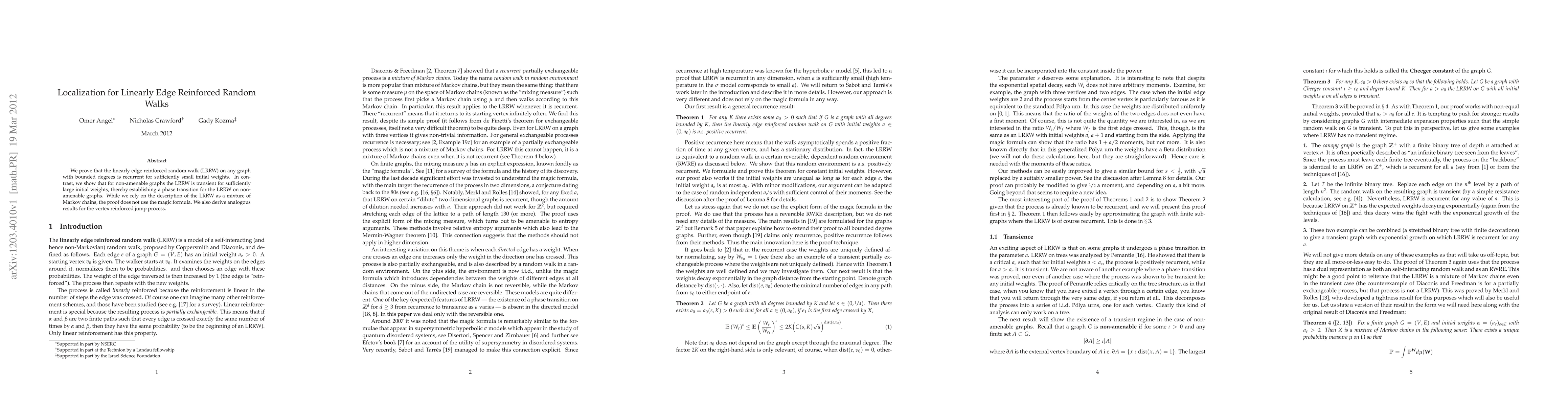 This paper proves that linearly edge reinforced random walks (LRRW) on graphs with bounded degrees are recurrent for small initial weights and transient for large weights on non-amenable graphs, demonstrating a phase transition. The authors also extend these findings to the vertex reinforced jump process.