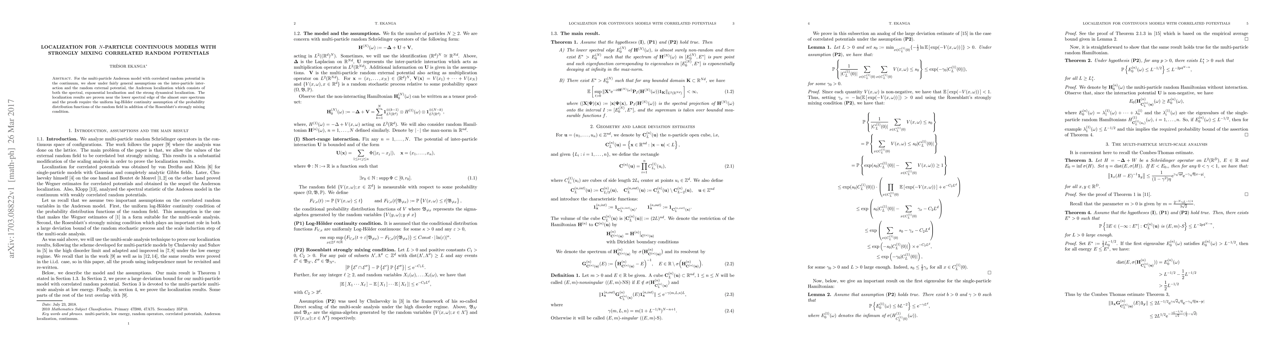 This paper demonstrates Anderson localization in the multi-particle continuum model with correlated random potentials, proving both spectral and strong dynamical localization under general conditions. The proofs rely on the uniform log-Hölder continuity and Rosenblatt's strongly mixing condition of the random field.