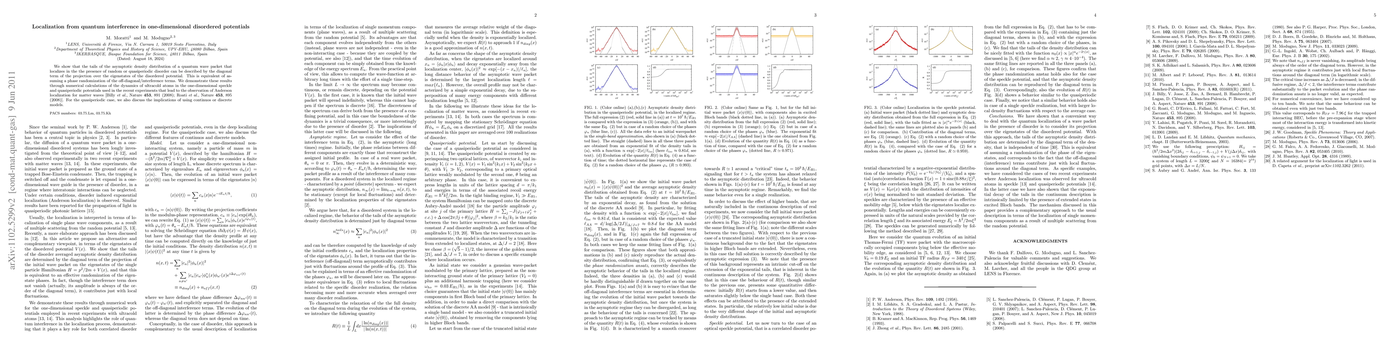 We show that the tails of the asymptotic density distribution of a quantum wave packet that localizes in the the presence of random or quasiperiodic disorder can be described by the diagonal term of the projection over the eingenstates of the disordered potential. This is equivalent of assuming a phase randomization of the off-diagonal/interference terms. We demonstrate these results through numerical calculations of the dynamics of ultracold atoms in the one-dimensional speckle and quasiperiodic potentials used in the recent experiments that lead to the observation of Anderson localization for matter waves [Billy et al., Nature 453, 891 (2008); Roati et al., Nature 453, 895 (2008)]. For the quasiperiodic case, we also discuss the implications of using continuos or discrete models.