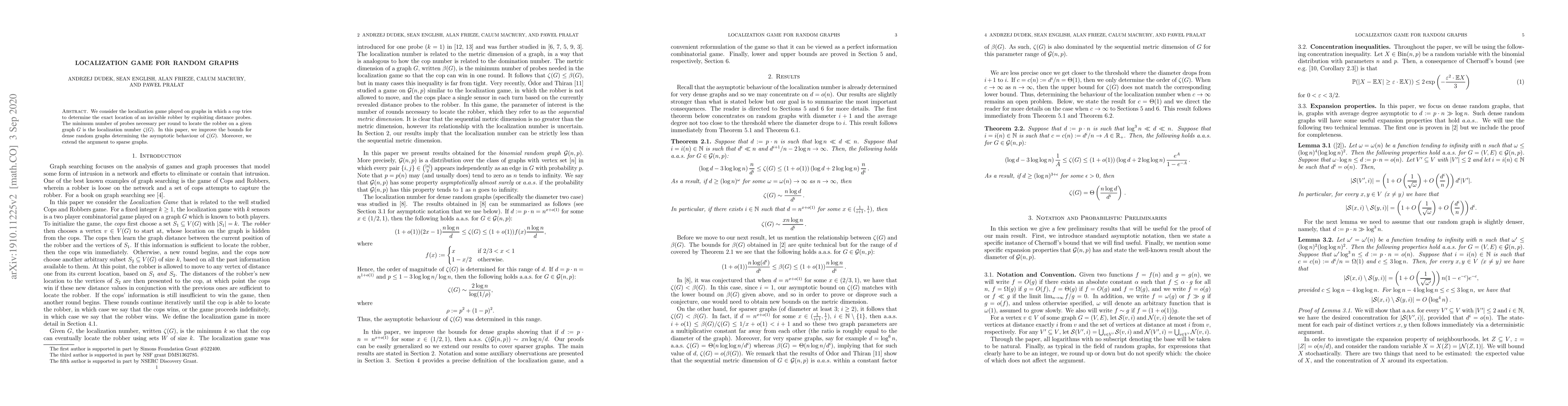 This paper improves the bounds for the localization number $\zeta(G)$ in both dense and sparse random graphs, determining its asymptotic behavior and extending the argument to a broader range of graph types. The localization game involves a cop trying to locate an invisible robber using distance probes.