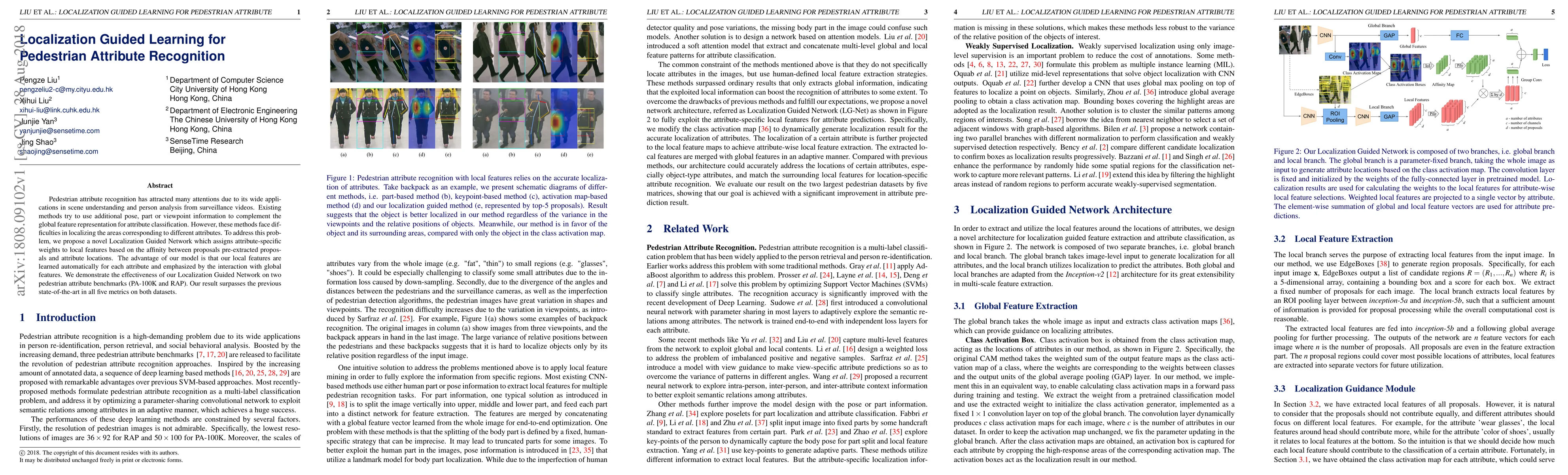 The paper proposes a Localization Guided Network for pedestrian attribute recognition, which assigns attribute-specific weights to local features based on their affinity to pre-extracted proposals and attribute locations, outperforming previous state-of-the-art methods on two benchmarks.