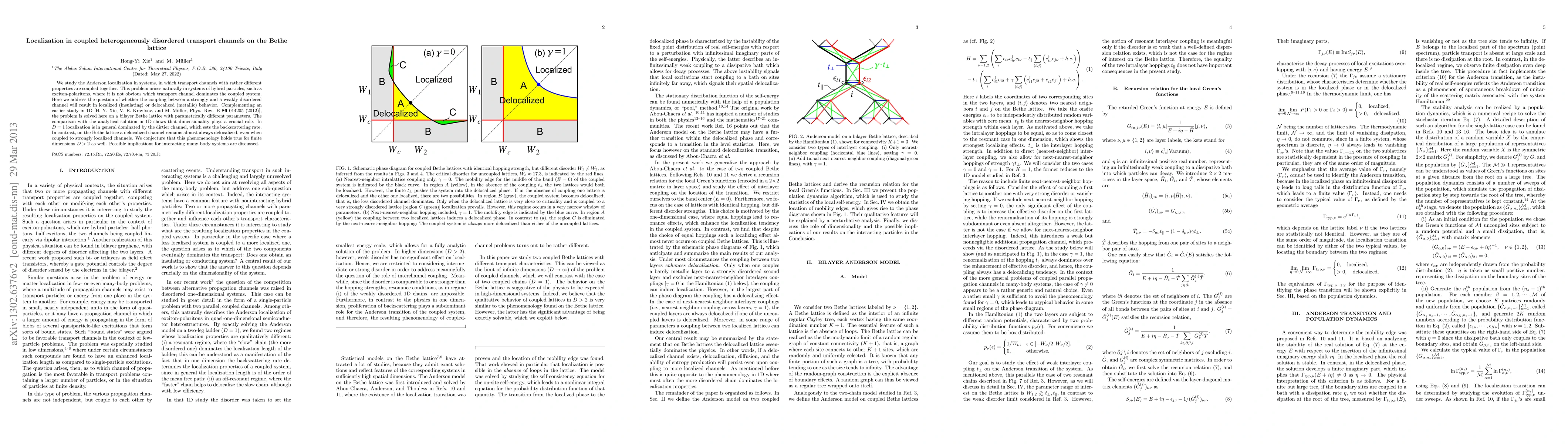 We study the Anderson localization in systems, in which transport channels with rather different properties are coupled together. This problem arises naturally in systems of hybrid particles, such as exciton-polaritons, where it is not obvious which transport channel dominates the coupled system. Here we address the question of whether the coupling between a strongly and a weakly disordered channel will result in localized (insulating) or delocalized (metallic) behavior. Complementing an earlier study in 1D [H. Y. Xie, V. E. Kravtsov, and M. M\"uller, Phys. Rev. B \textbf{86} 014205 (2012)], the problem is solved here on a bilayer Bethe lattice with parametrically different parameters. The comparison with the analytical solution in 1D shows that dimensionality plays a crucial role. In D=1 localization is in general dominated by the dirtier channel, which sets the backscattering rate. In contrast, on the Bethe lattice a delocalized channel remains almost always delocalized, even when coupled to strongly localized channels. We conjecture that this phenomenology holds true for finite dimensions $D>2$ as well. Possible implications for interacting many-body systems are discussed.