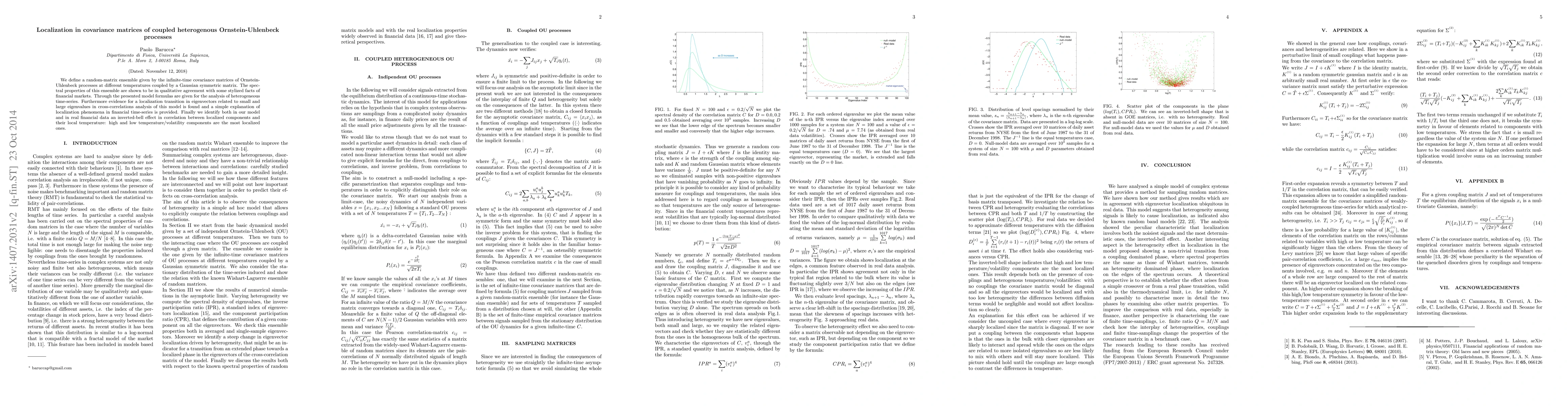 This paper introduces a random-matrix ensemble based on covariance matrices of coupled Ornstein-Uhlenbeck processes at different temperatures, demonstrating its spectral properties align with financial market behaviors. It also reveals a localization transition in eigenvectors and provides a model for analyzing heterogeneous time-series, identifying an inverted-bell effect in correlations between localized components and their local temperature.