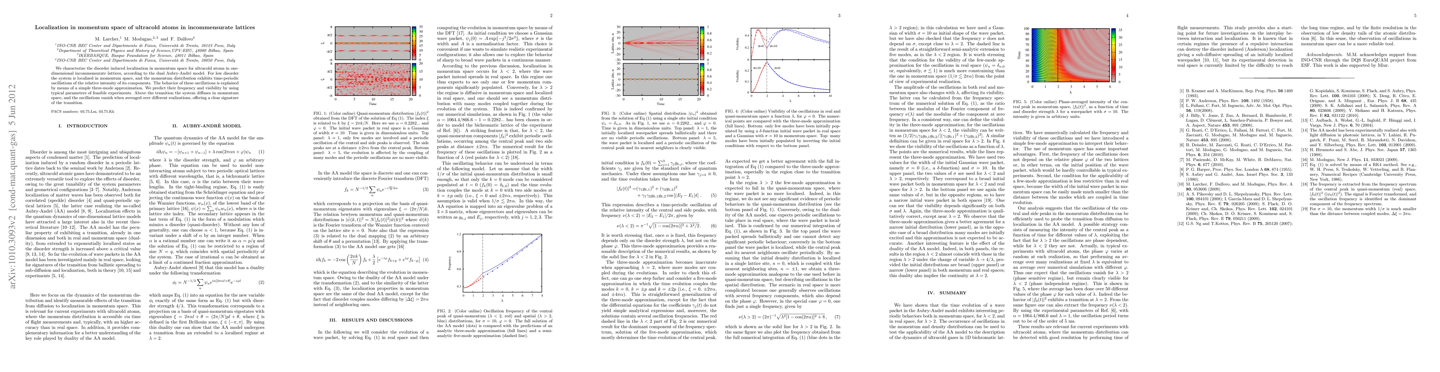 This paper investigates the localization of ultracold atoms in one-dimensional incommensurate lattices using the dual Aubry-André model, showing that low disorder leads to momentum space localization with time-periodic oscillations, while above a certain disorder level, the system diffuses and these oscillations vanish.