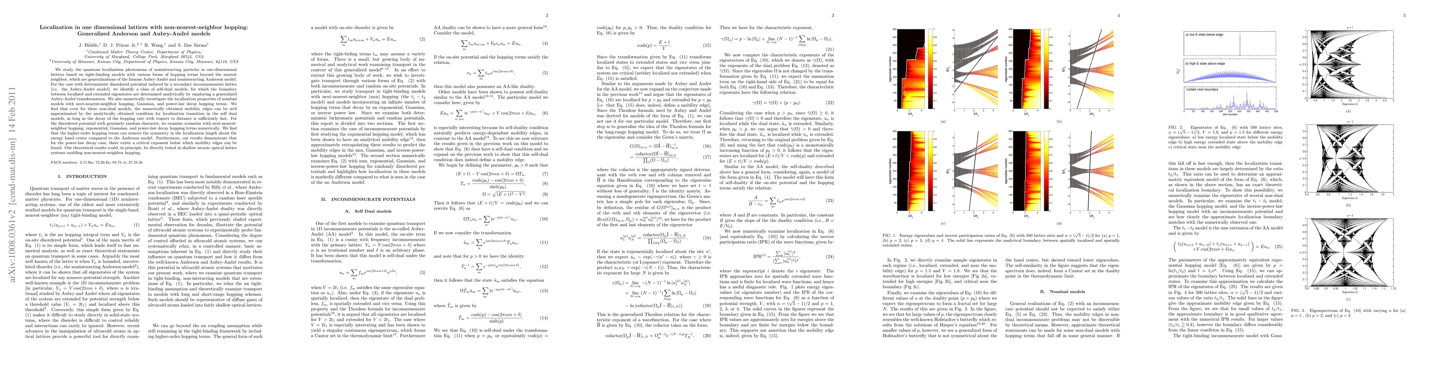 This paper investigates quantum localization in one-dimensional lattices with non-nearest-neighbor hopping, generalizing the Aubry-André and Anderson models. It analytically identifies self-dual models and numerically examines non-dual models, finding that higher-order hopping terms can disrupt symmetry in localization length and that a critical exponent exists for power-law decay hopping. The results are applicable to shallow atomic optical lattice systems.