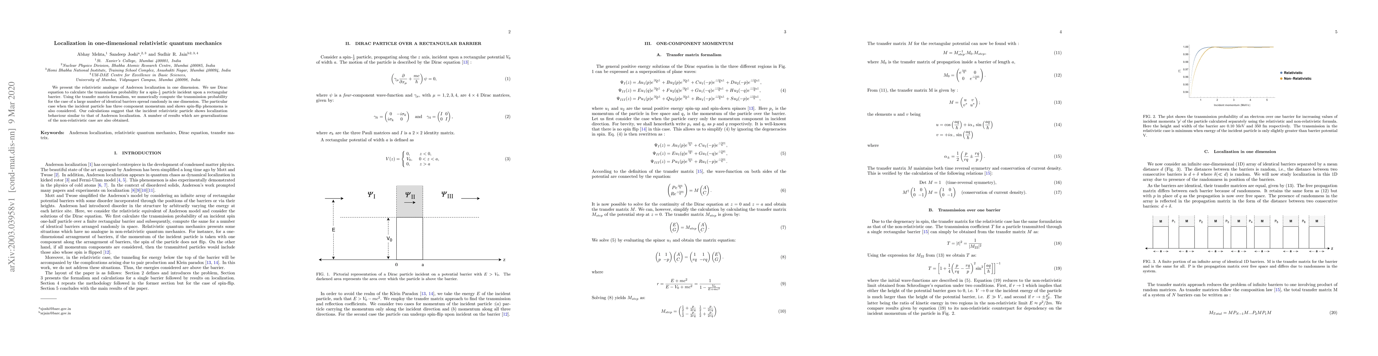 This research explores relativistic Anderson localization in 1D using the Dirac equation and transfer matrix method, finding that a spin-1/2 particle exhibits localization behavior akin to non-relativistic Anderson localization, with additional considerations for three-component momentum and spin-flip phenomena.