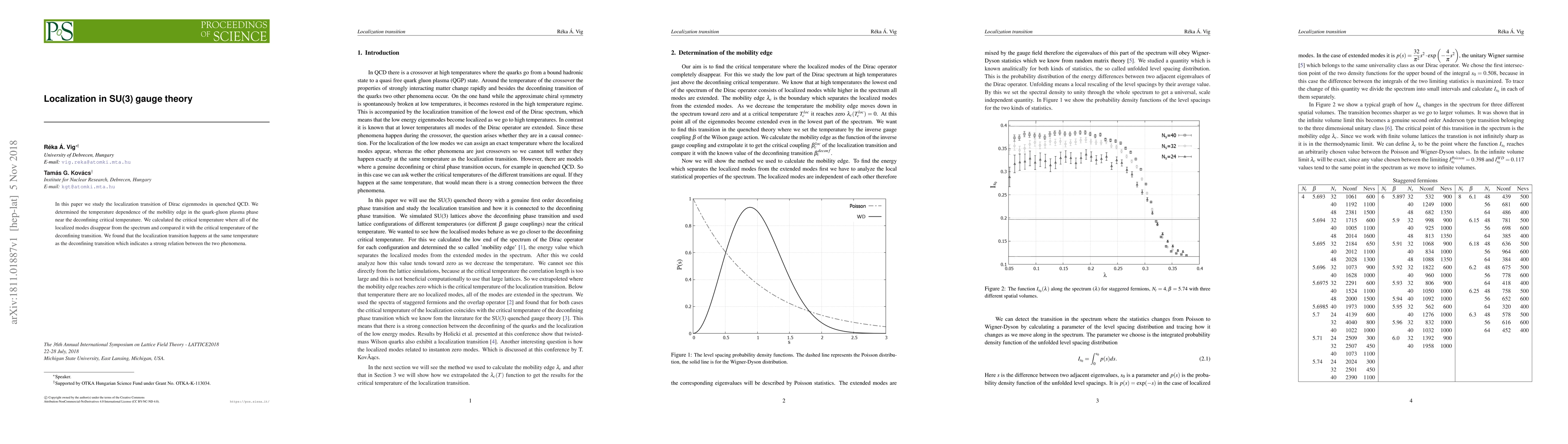 In this paper we study the localization transition of Dirac eigenmodes in quenched QCD. We determined the temperature dependence of the mobility edge in the quark-gluon plasma phase near the deconfining critical temperature. We calculated the critical temperature where all of the localized modes disappear from the spectrum and compared it with the critical temperature of the deconfining transition. We found that the localization transition happens at the same temperature as the deconfining transition which indicates a strong relation between the two phenomena.