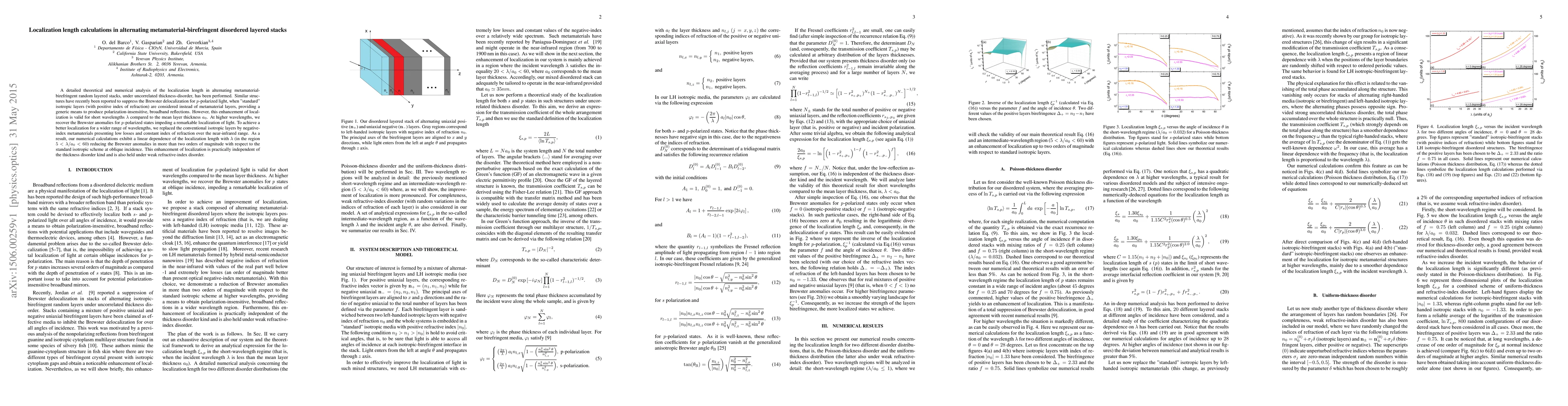 This paper investigates the localization length in alternating metamaterial-birefringent disordered layered stacks, demonstrating that replacing conventional isotropic layers with negative-index metamaterials significantly enhances light localization across a broader range of wavelengths, reducing Brewster anomalies by over two orders of magnitude.