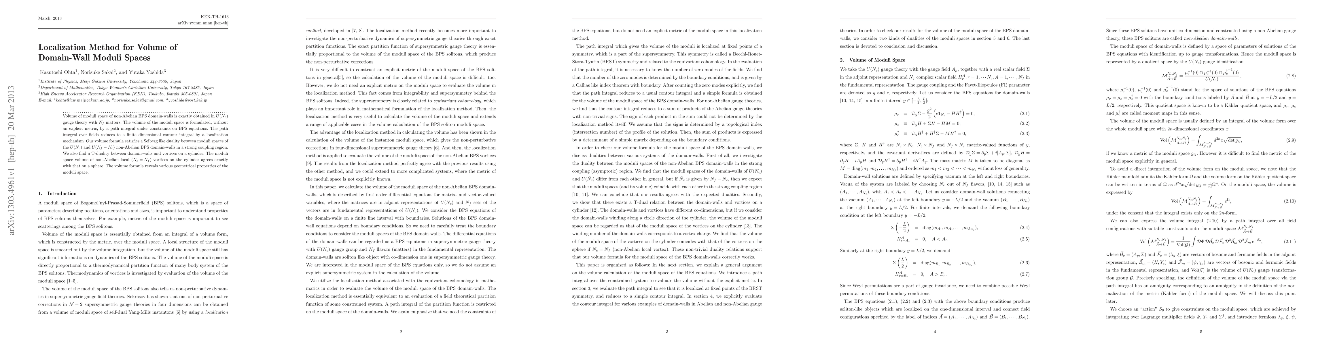 This paper presents a method for calculating the volume of moduli spaces of non-Abelian BPS domain-walls in U(N_c) gauge theory, using a localization mechanism to reduce a path integral to a finite dimensional contour integral. The results exhibit Seiberg-like duality and T-duality, revealing geometrical properties of the moduli space.