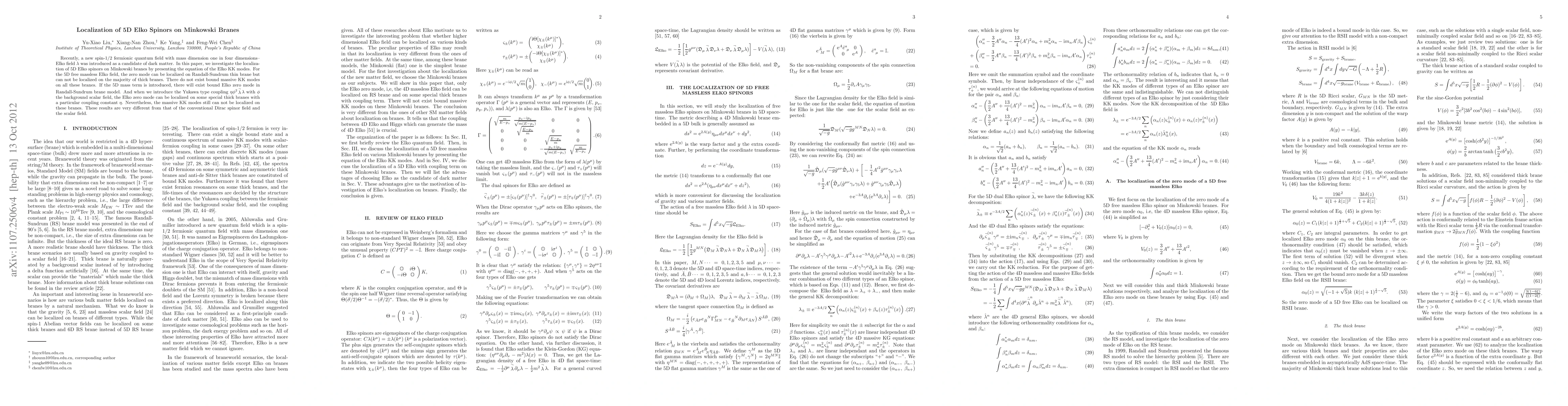 This paper explores the localization of 5D Elko spinors on Minkowski branes, finding that the zero mode can be localized on Randall-Sundrum thin branes but not on most thick branes, with no bound massive KK modes. Introducing a Yukawa coupling allows zero mode localization on specific thick branes.