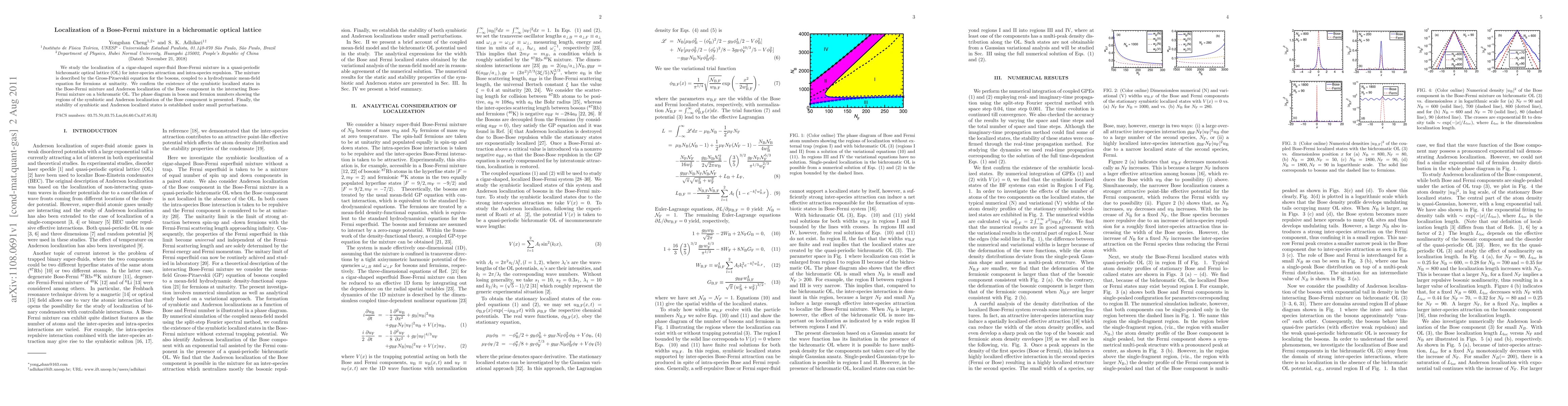 This study investigates the localization of a Bose-Fermi mixture within a bichromatic optical lattice, confirming the existence of symbiotic localized states and Anderson localization of the Bose component. The research provides a phase diagram illustrating regions of localization and establishes the stability of these states under small perturbations.