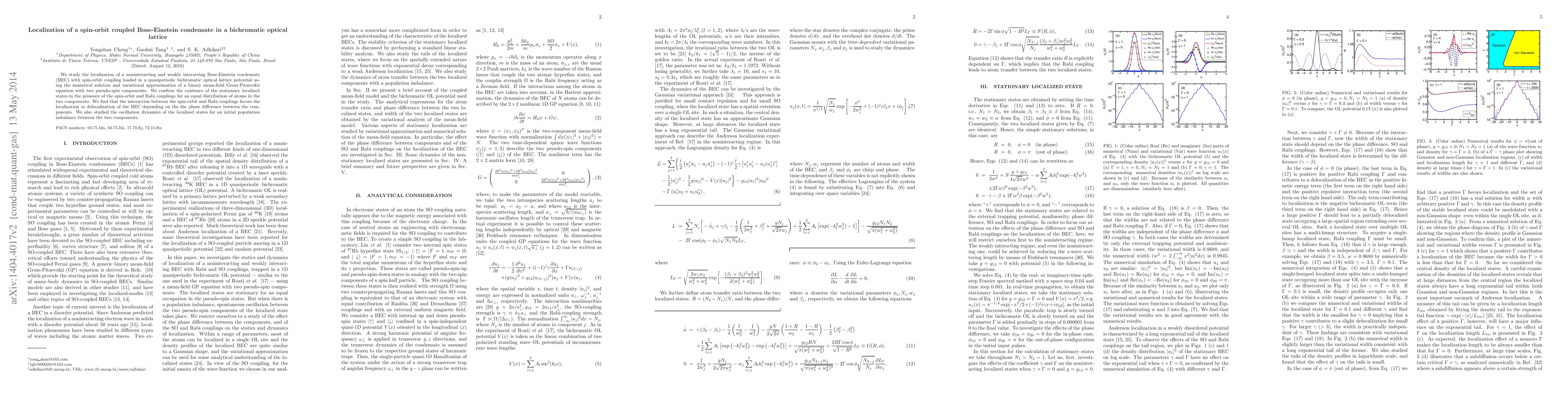 This paper investigates the localization of spin-orbit coupled Bose-Einstein condensates in a quasiperiodic bichromatic optical lattice using numerical and variational methods. It confirms the existence of stationary localized states influenced by spin-orbit and Rabi couplings, with localization dynamics varying based on phase differences and initial population imbalances between components.