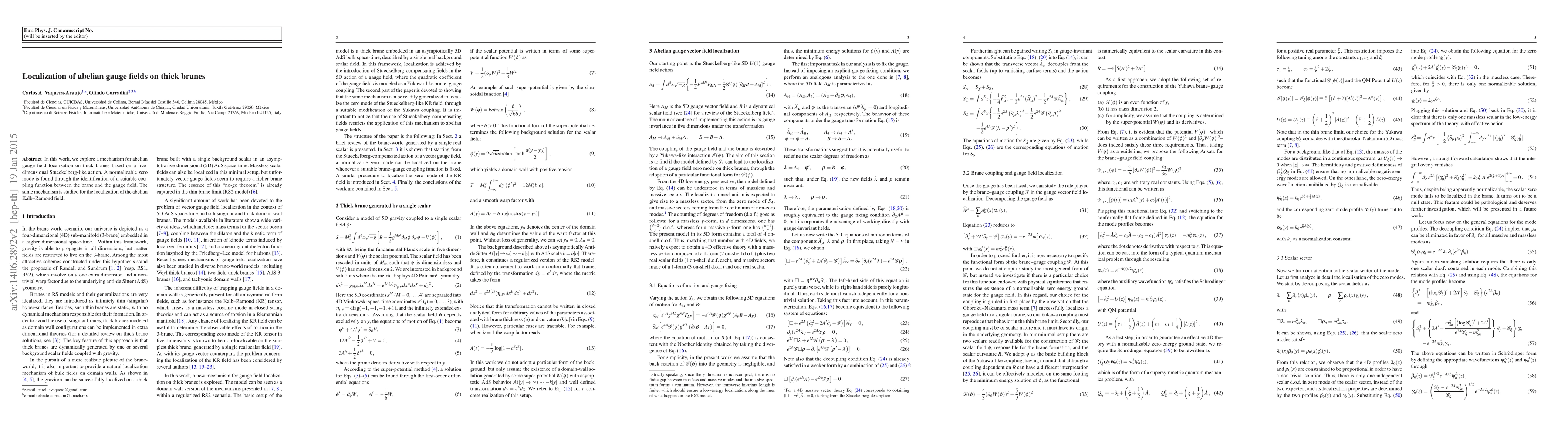 This paper investigates the localization of abelian gauge fields on thick branes using a five-dimensional Stueckelberg-like action, identifying a coupling function that supports a normalizable zero mode. The mechanism is also applied to the localization of the abelian Kalb-Ramond field.
