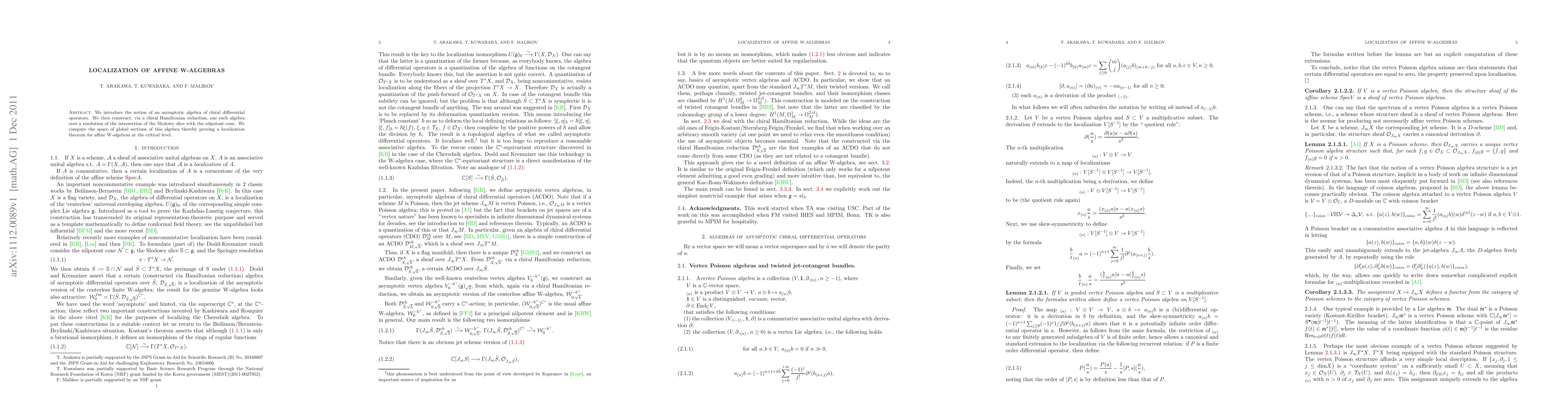 This paper introduces an asymptotic algebra of chiral differential operators and constructs it via chiral Hamiltonian reduction over a resolution of the Slodowy slice intersection with the nilpotent cone. The authors compute the global sections of this algebra, proving a localization theorem for affine W-algebras at the critical level.