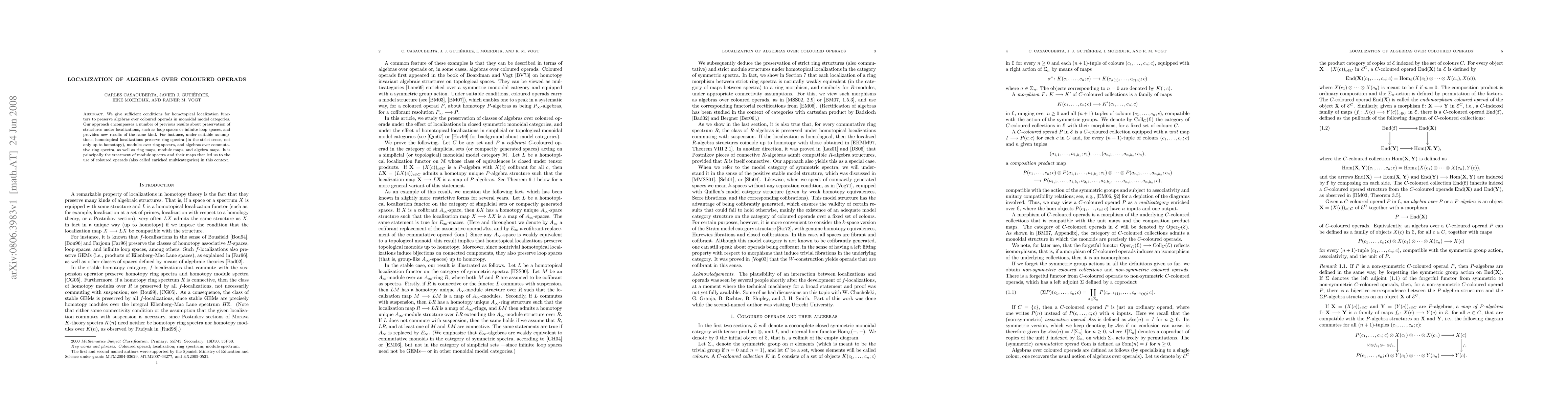 The paper develops sufficient conditions for homotopical localization functors to preserve algebras over colored operads in monoidal model categories, extending previous results on structure preservation under localizations.