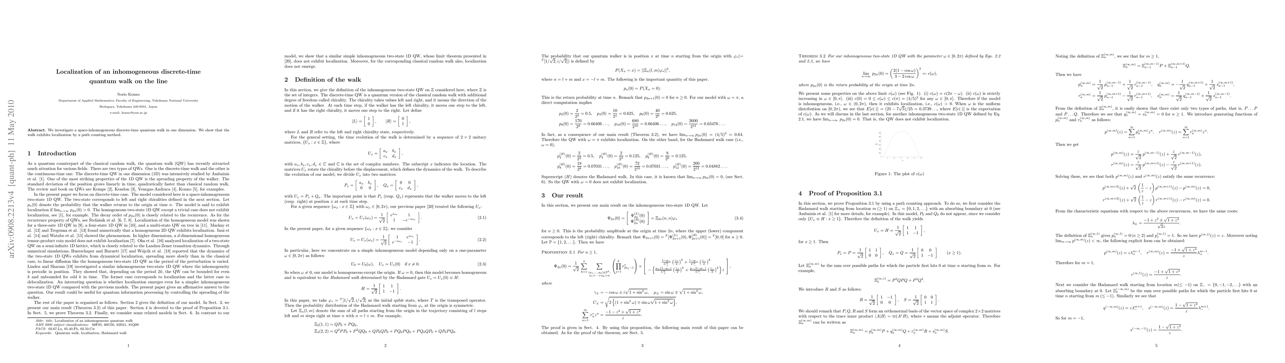 Summary: This paper explores a spatially non-uniform discrete-time quantum walk on a one-dimensional line, demonstrating through a path counting technique that the walk exhibits localization.