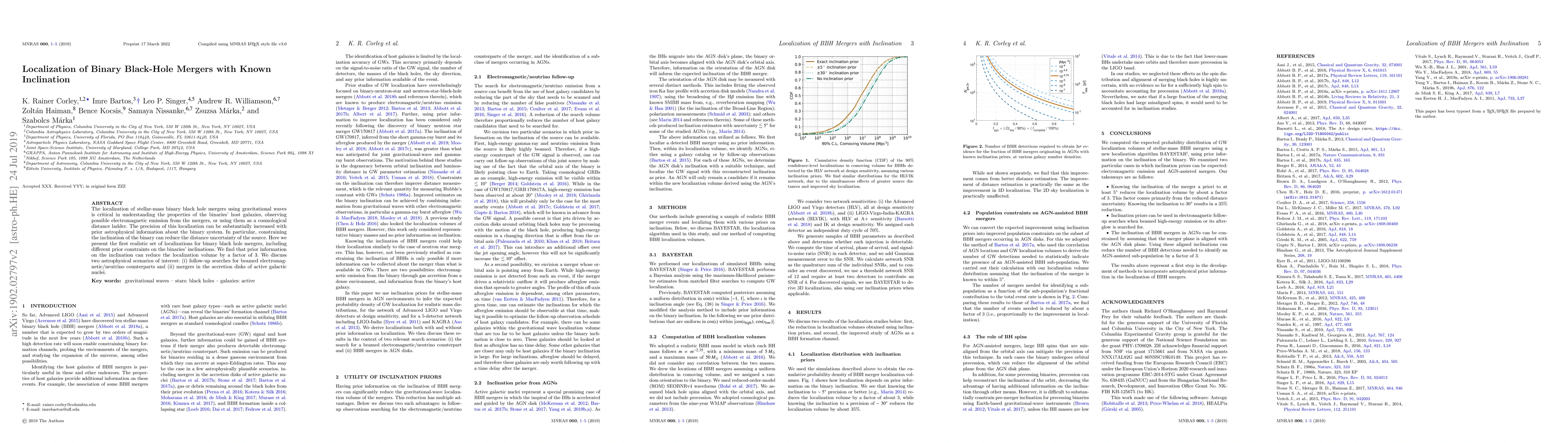 This paper presents a method to enhance the localization precision of binary black hole mergers detected via gravitational waves by incorporating prior knowledge of the binary's inclination, reducing the localization volume by a factor of three. The study discusses applications for electromagnetic counterpart searches and mergers in active galactic nuclei.