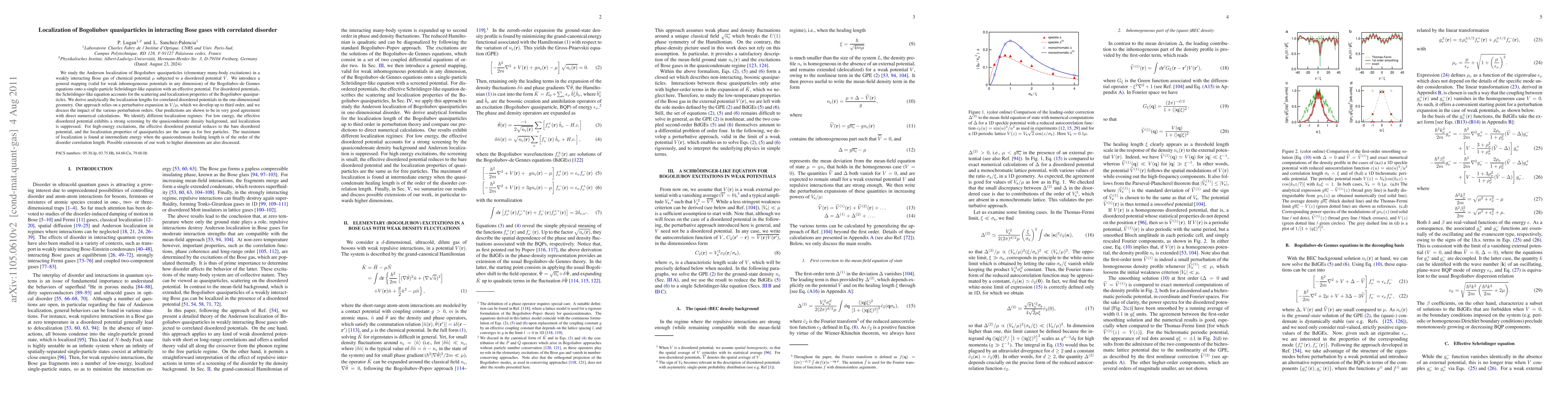This paper investigates the Anderson localization of Bogoliubov quasiparticles in weakly interacting Bose gases with correlated disorder, using a perturbative expansion to derive analytical localization lengths. It identifies distinct localization regimes depending on the energy of the excitations, with maximum localization occurring at intermediate energies.