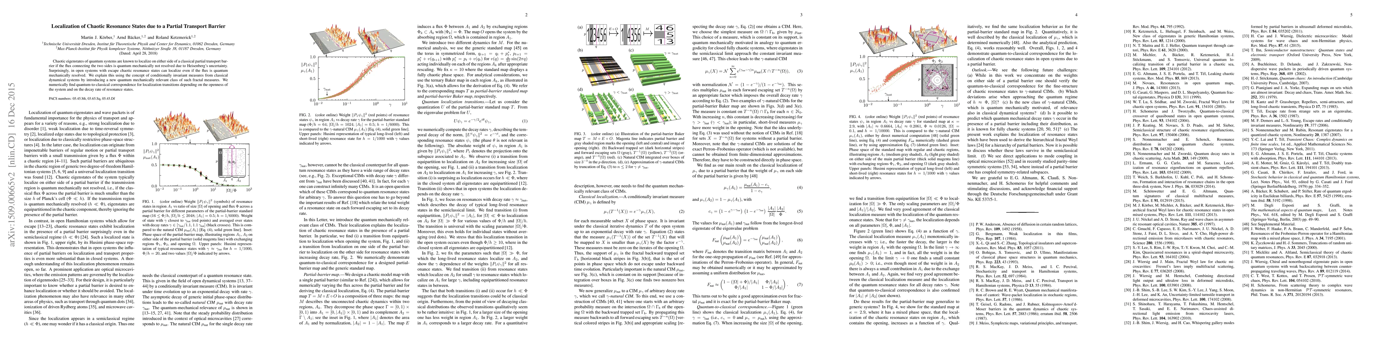 This paper explores how chaotic resonance states in quantum systems localize near a partial transport barrier even when quantum flux is resolved, using classical dynamical systems' conditionally invariant measures. It demonstrates a quantum-to-classical correspondence for localization transitions influenced by system openness and resonance state decay rates.