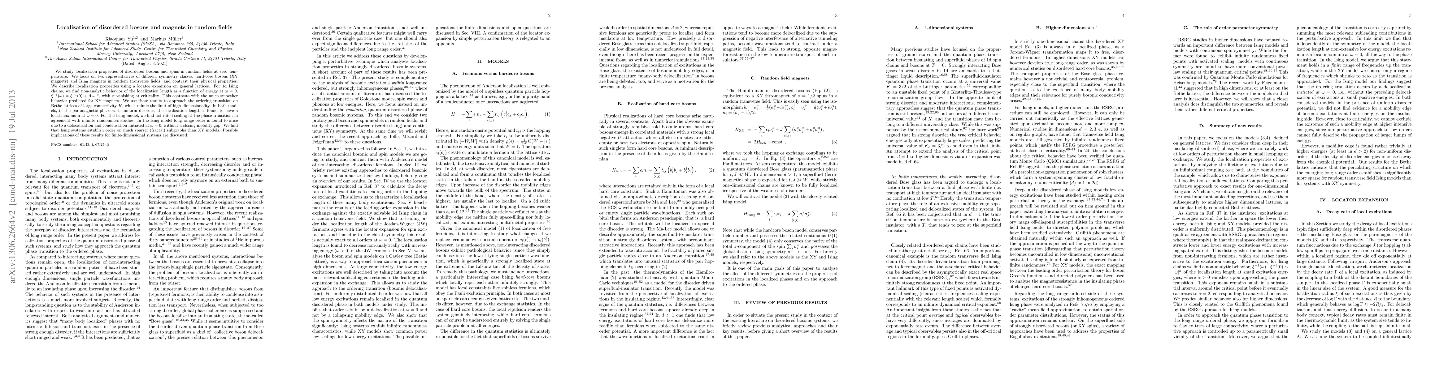 This paper investigates the localization of disordered bosons and spins in random fields at zero temperature, contrasting hard-core bosons (XY magnets) and Ising magnets. The study reveals non-analytic behavior in the localization length for 1D Ising chains, contrasting with smoother behavior in XY magnets, and discusses implications for high-dimensional systems and phase transitions.