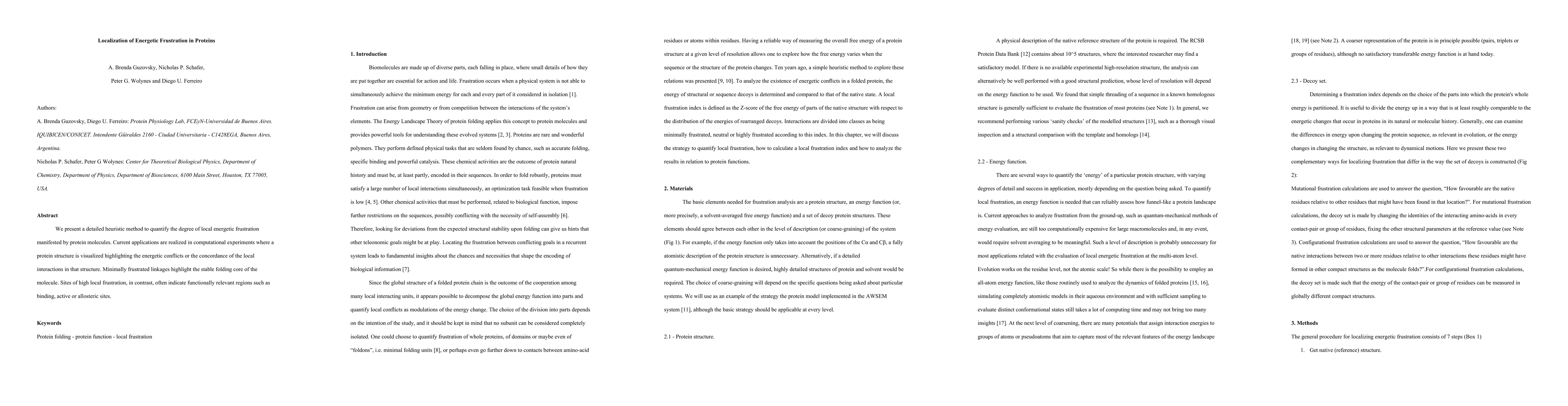 We present a detailed heuristic method to quantify the degree of local energetic frustration manifested by protein molecules. Current applications are realized in computational experiments where a protein structure is visualized highlighting the energetic conflicts or the concordance of the local interactions in that structure. Minimally frustrated linkages highlight the stable folding core of the molecule. Sites of high local frustration, in contrast, often indicate functionally relevant regions such as binding, active or allosteric sites.