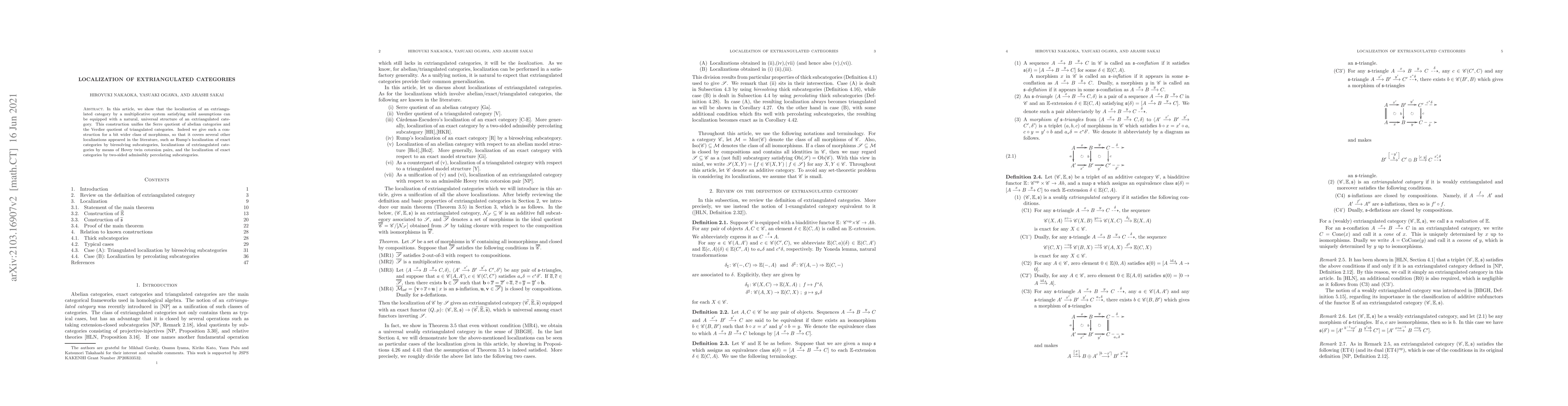 The paper demonstrates how localization of an extriangulated category via a suitable multiplicative system results in a naturally structured extriangulated category, unifying various existing localization methods in category theory. This construction extends to a broader class of morphisms, encompassing several previously reported localization techniques.