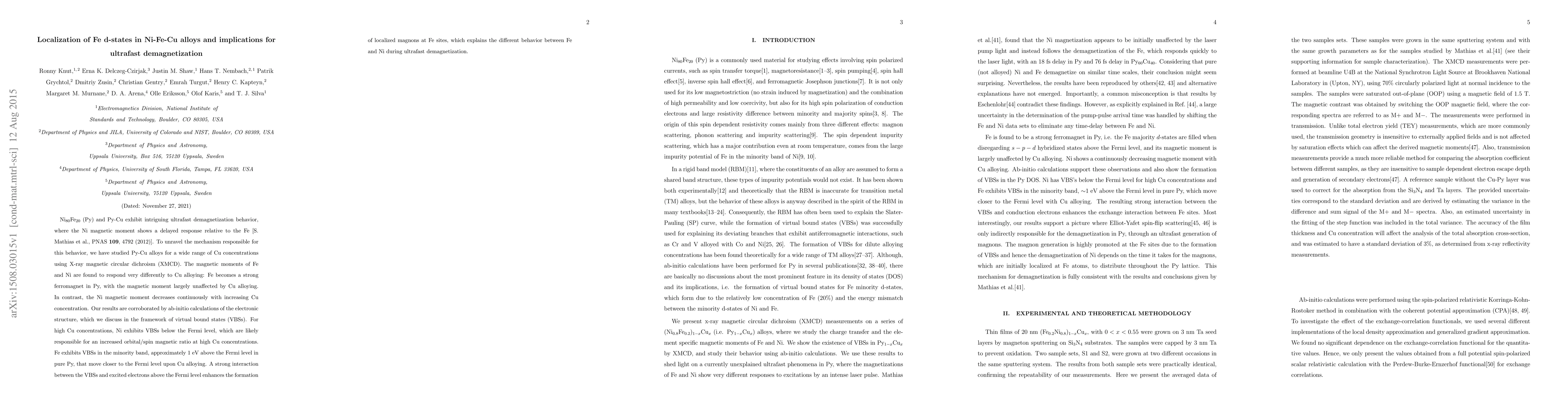This study investigates the localization of Fe d-states in Ni-Fe-Cu alloys using XMCD and ab-initio calculations, revealing that Fe's magnetic moment remains stable while Ni's decreases with increasing Cu. The distinct behaviors during ultrafast demagnetization are attributed to the interaction of virtual bound states (VBSs) with excited electrons, which enhances localized magnon formation at Fe sites.