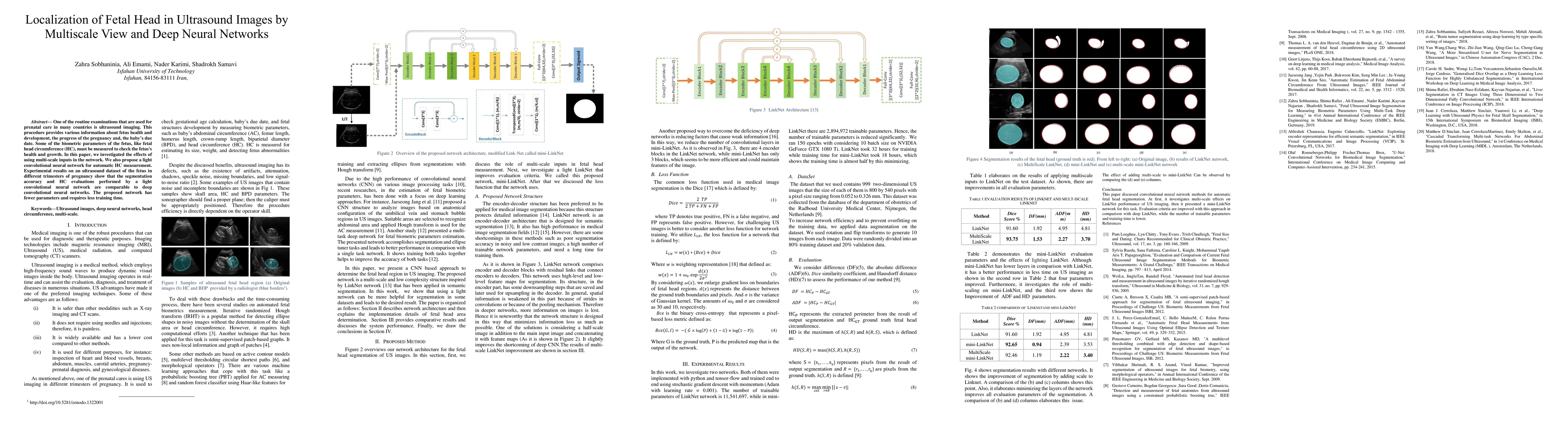 One of the routine examinations that are used for prenatal care in many countries is ultrasound imaging. This procedure provides various information about fetus health and development, the progress of the pregnancy and, the baby's due date. Some of the biometric parameters of the fetus, like fetal head circumference (HC), must be measured to check the fetus's health and growth. In this paper, we investigated the effects of using multi-scale inputs in the network. We also propose a light convolutional neural network for automatic HC measurement. Experimental results on an ultrasound dataset of the fetus in different trimesters of pregnancy show that the segmentation accuracy and HC evaluations performed by a light convolutional neural network are comparable to deep convolutional neural networks. The proposed network has fewer parameters and requires less training time.