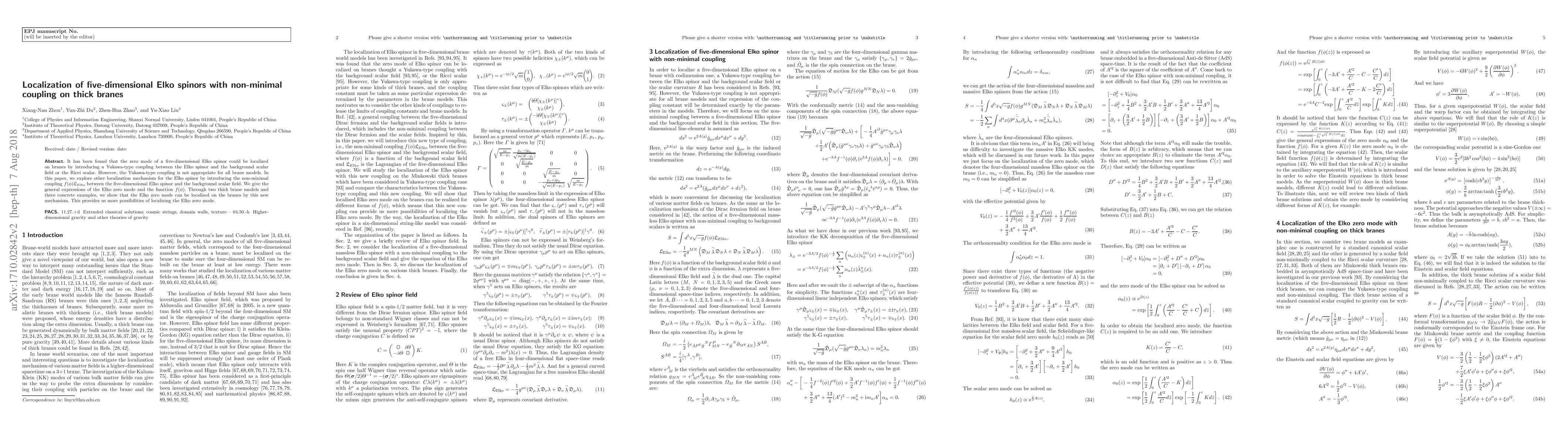 Research explores a new mechanism for localizing five-dimensional Elko spinors on branes, using non-minimal coupling with the background scalar field, offering alternative possibilities for localization.