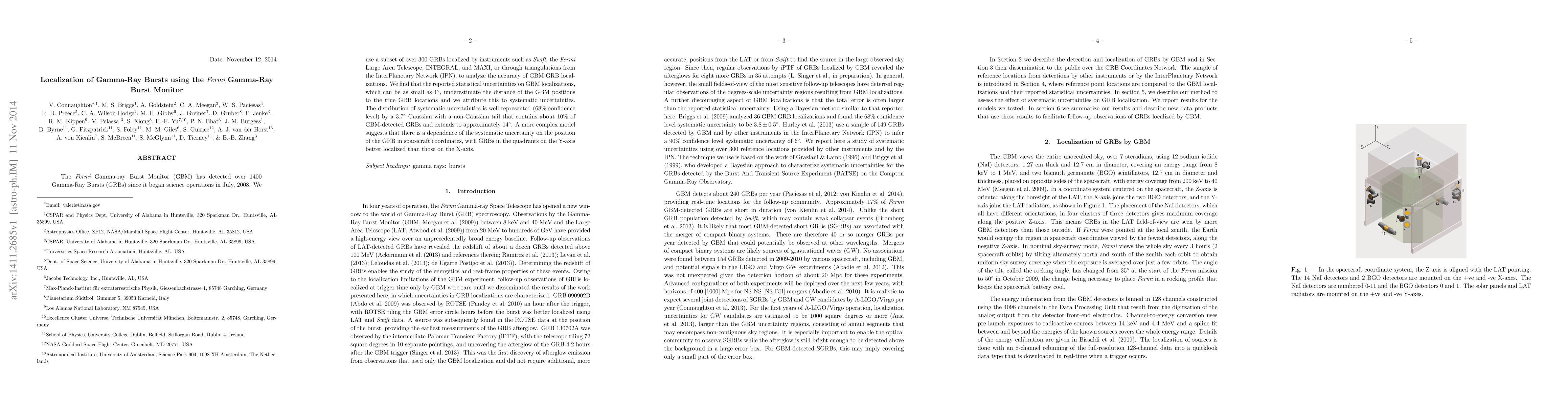 The Fermi Gamma-ray Burst Monitor (GBM) has detected over 1400 Gamma-Ray Bursts (GRBs) since 2008, but its reported statistical uncertainties underestimate the true localization errors. The systematic uncertainties are best modeled by a 3.7-degree Gaussian distribution with a non-Gaussian tail extending to 14 degrees, and there is a positional dependence in the systematic errors.